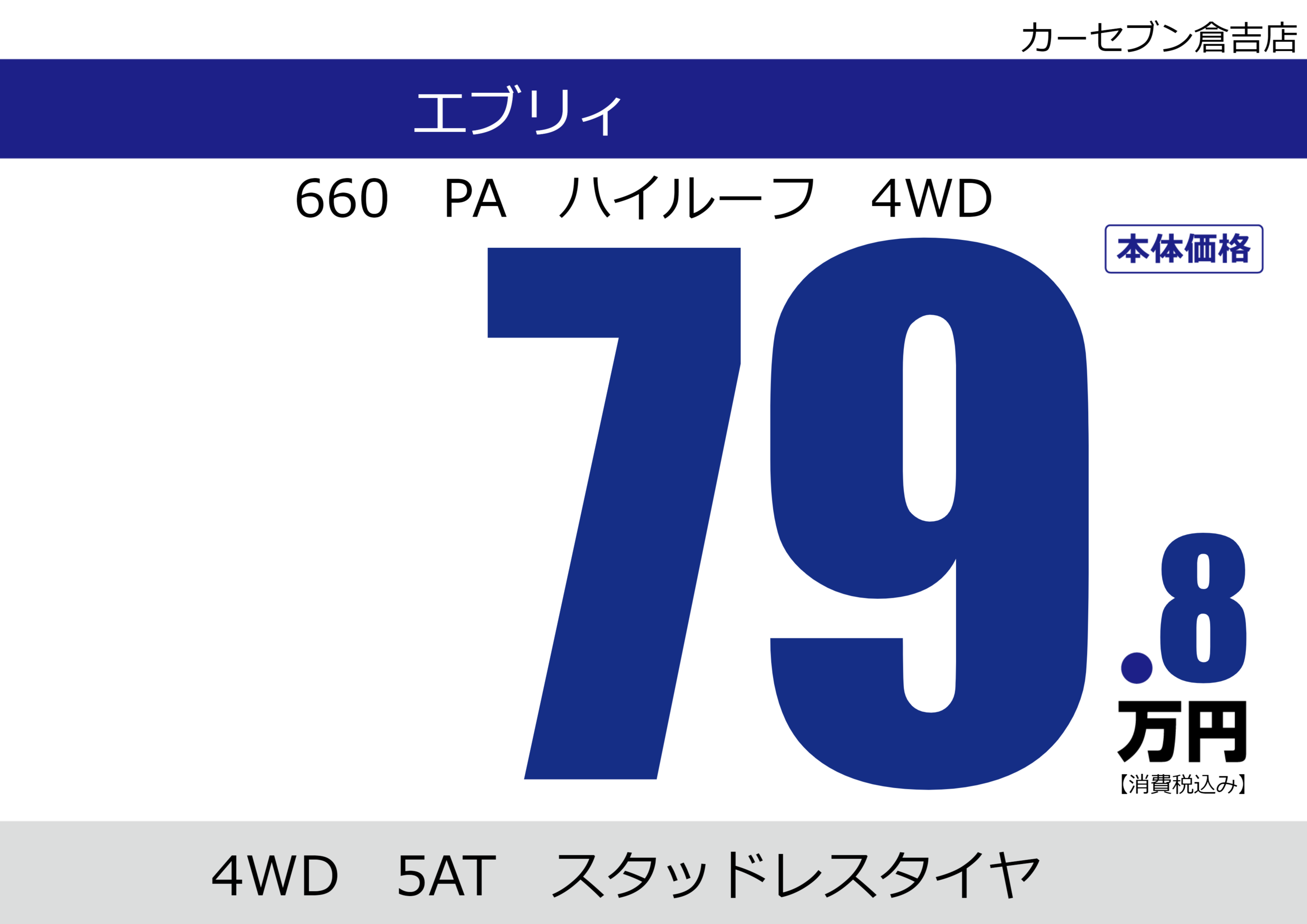| 車名 | エブリィ | グレード ミッション 排気量 |
