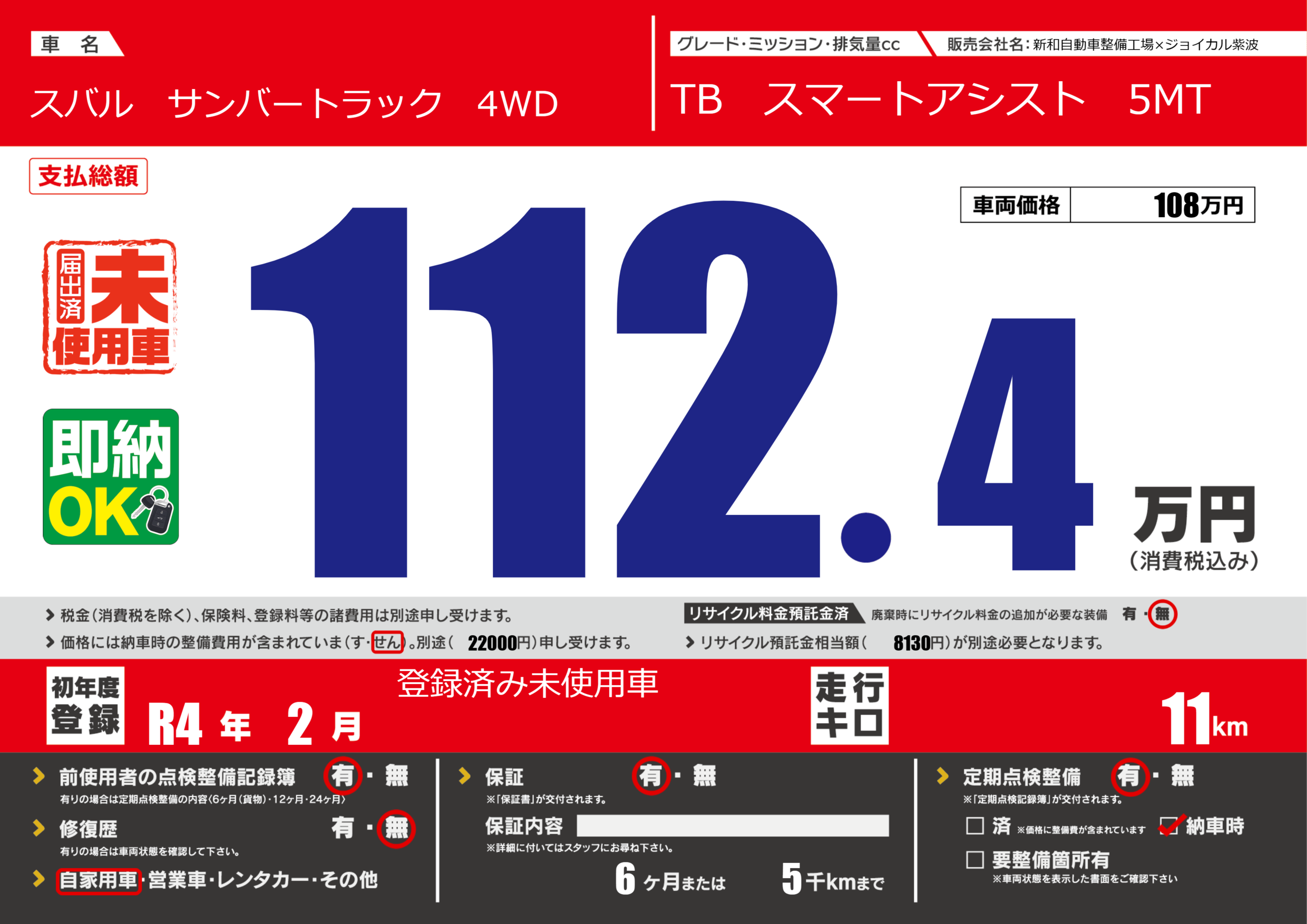 保証付き 保証内容(---) 6ヶ月または(5)千kmまで |