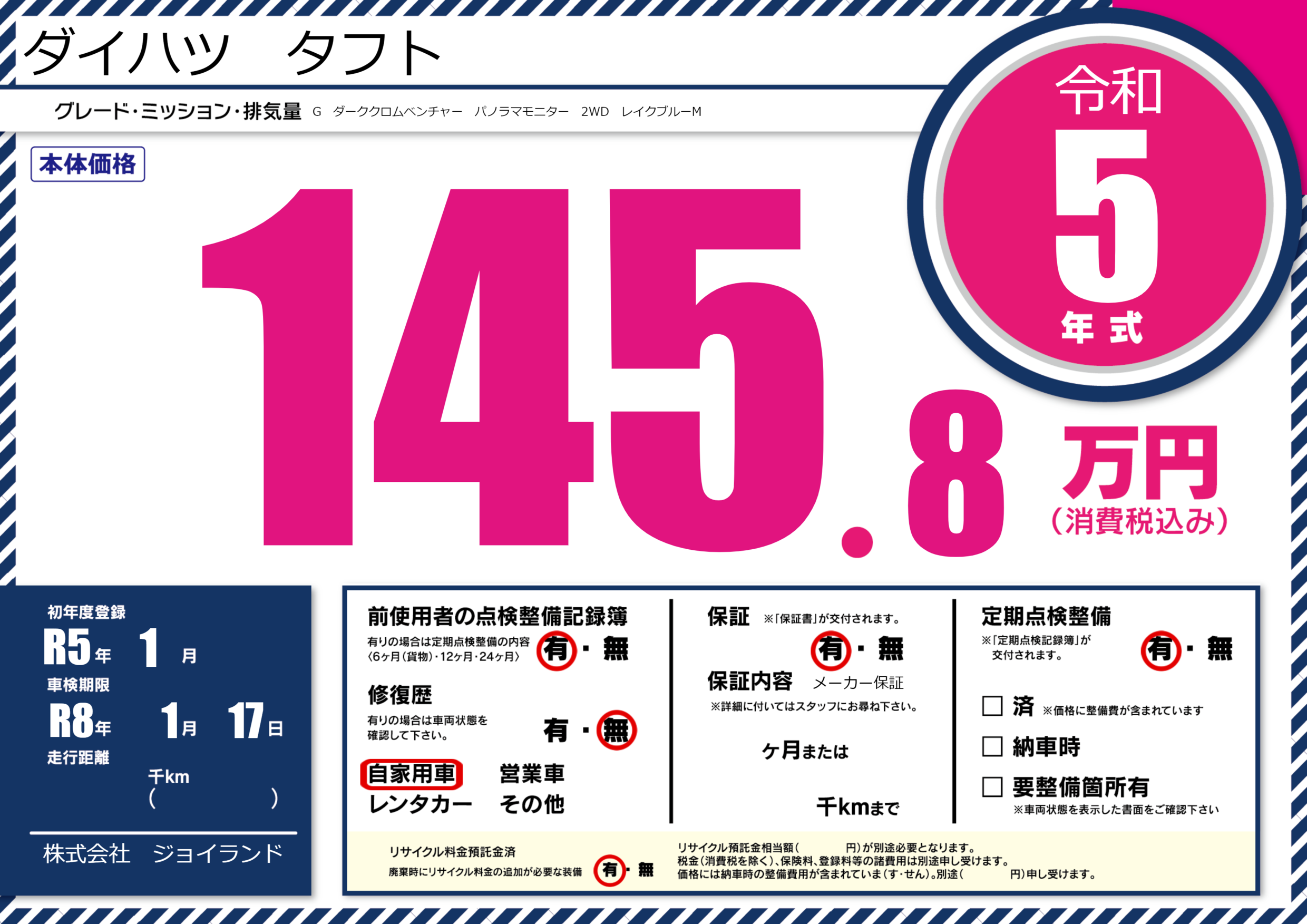 | 走行キロ | - | 初年度登録 | R5年1月 |