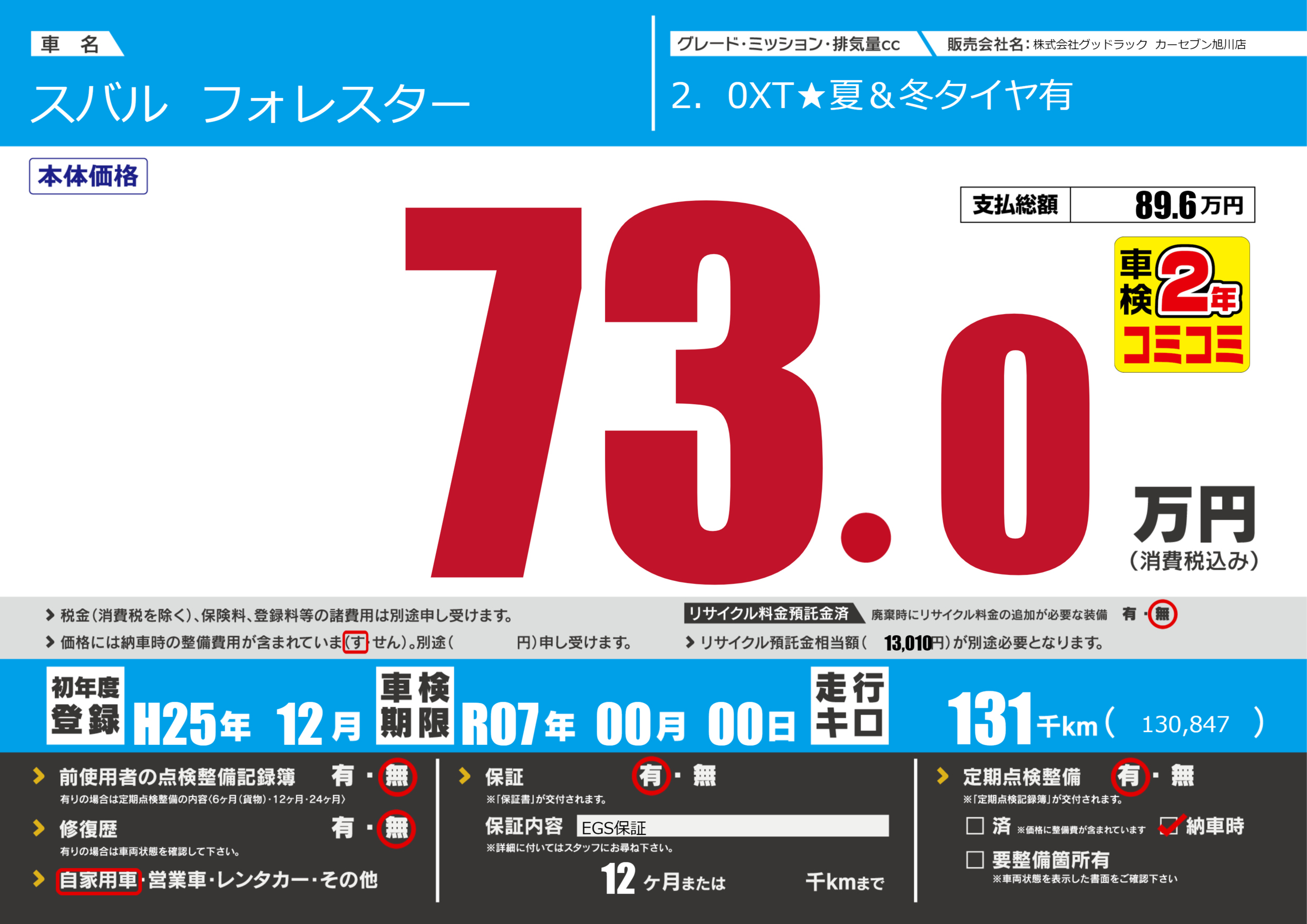 | 走行キロ | 13.1万km | ||