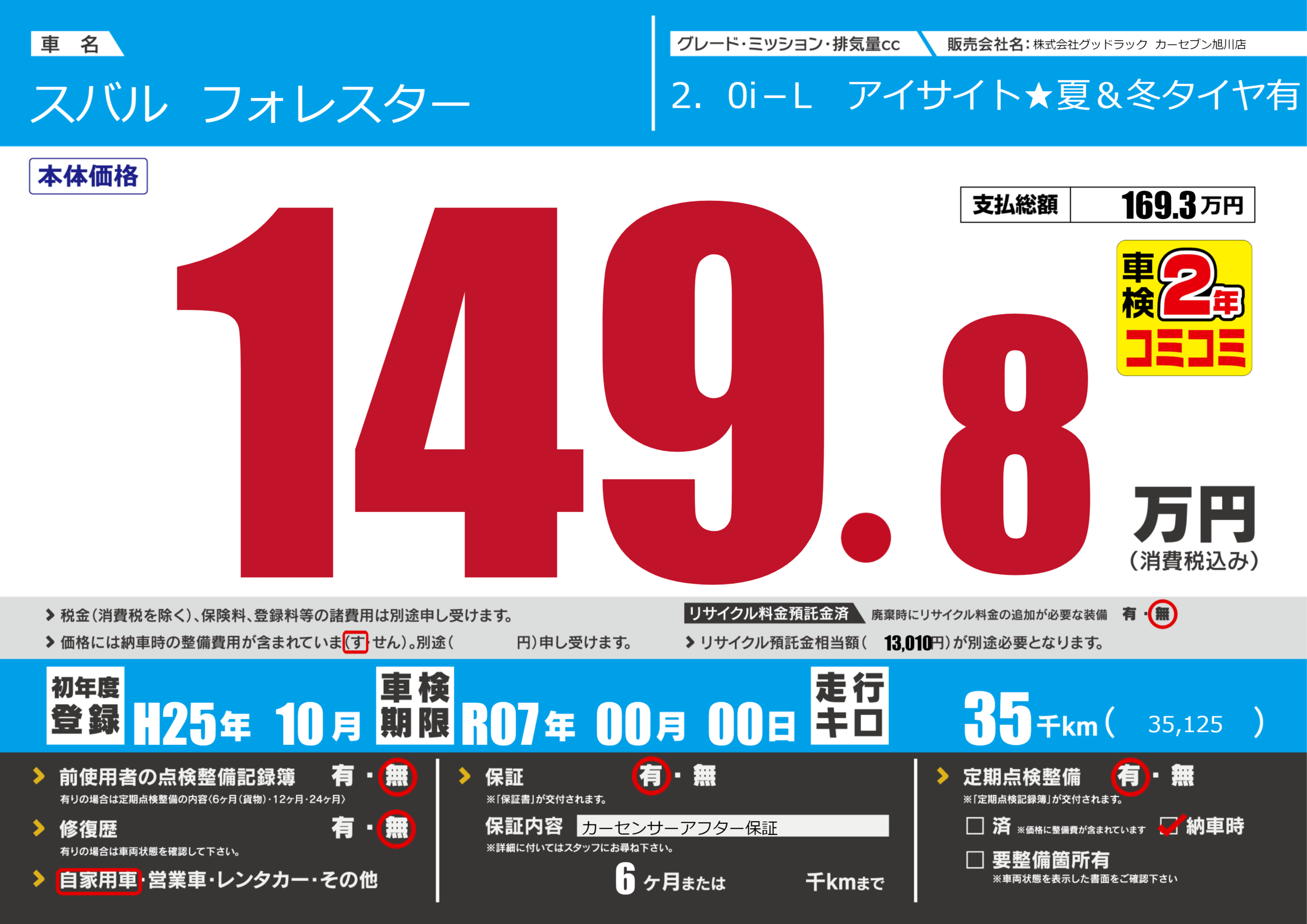 | 車検制限 | R07年 00月 00日 | ||