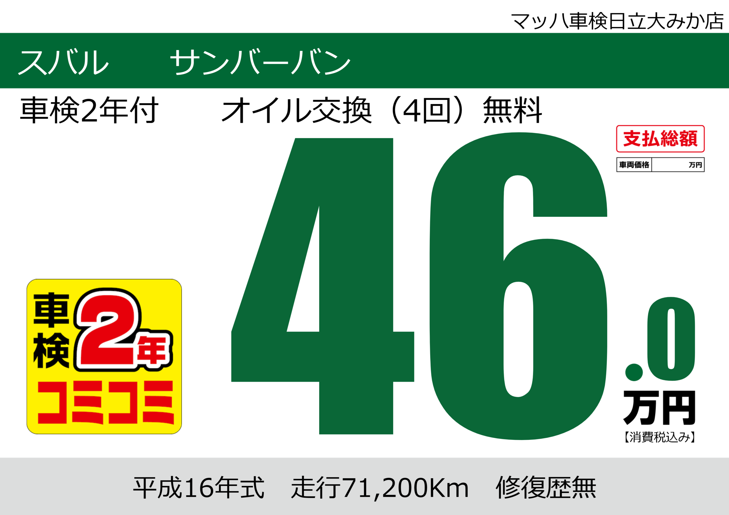| 車名 | スバル サンバーバン | グレード ミッション 排気量 |