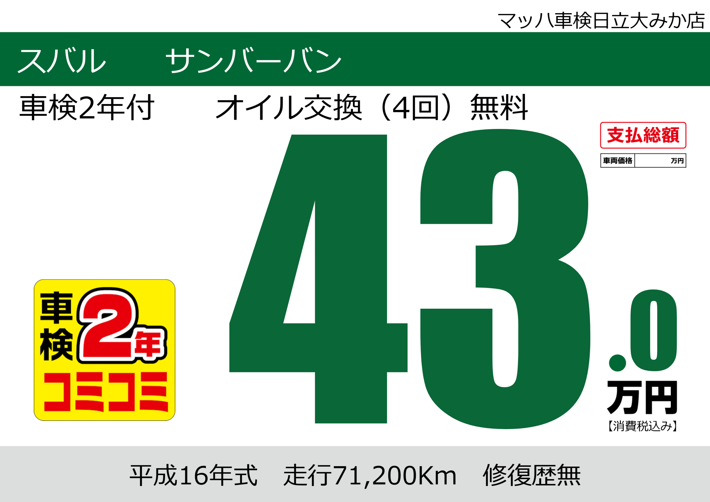 車検2年付 オイル交換(4回)無料 |