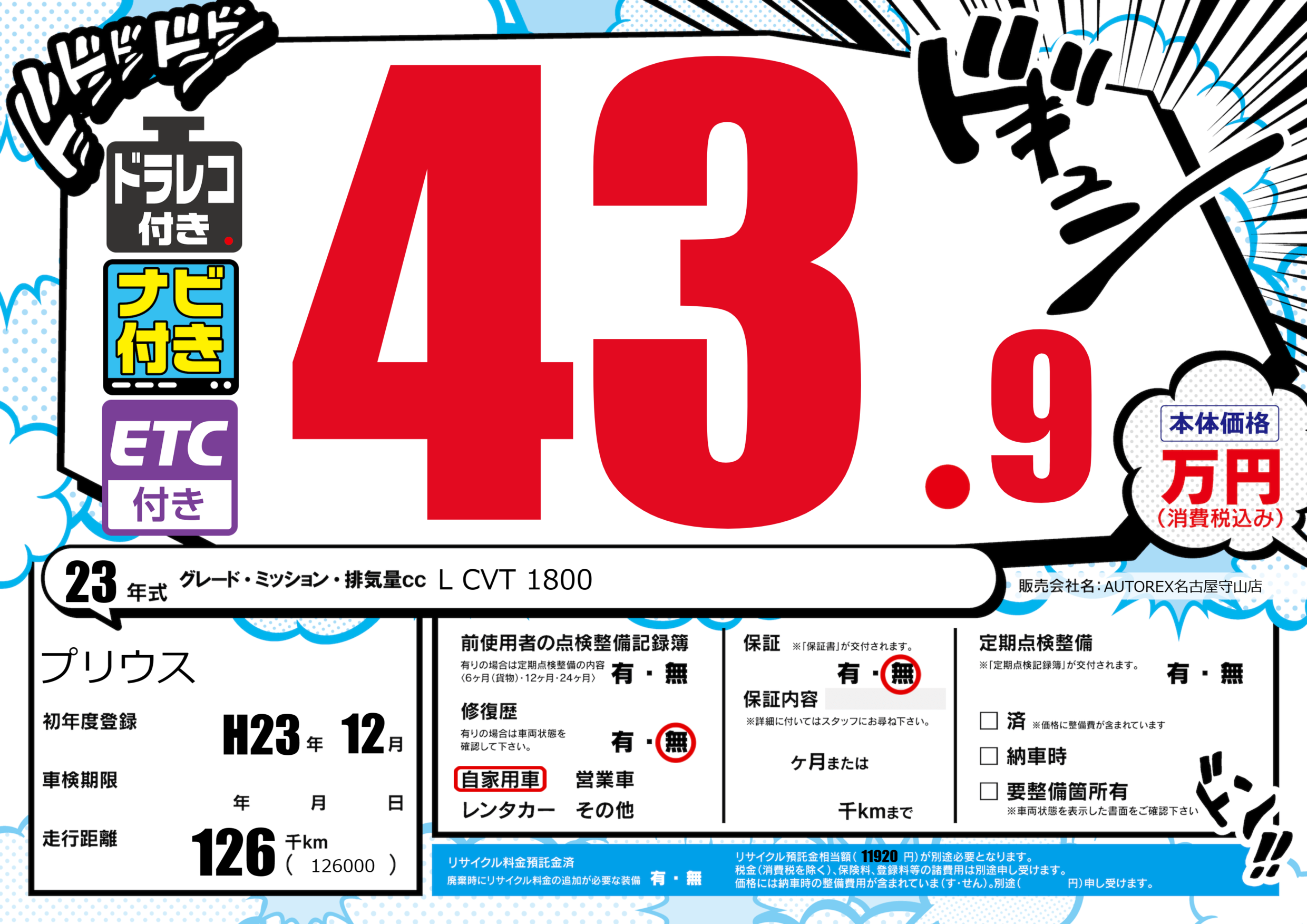 | 車名 | プリウス | グレード ミッション 排気量 |