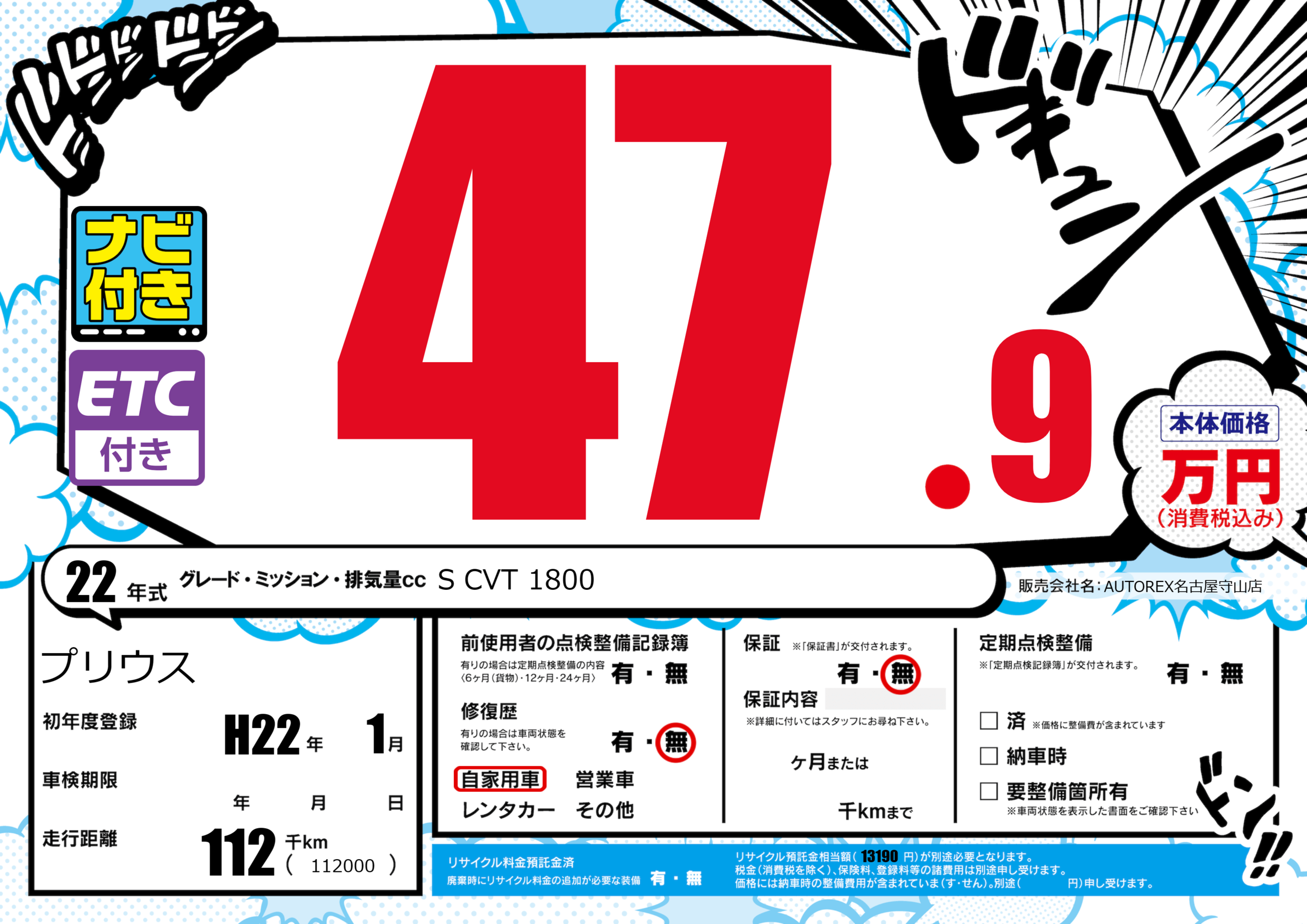 | 車名 | プリウス | グレード ミッション 排気量 |
