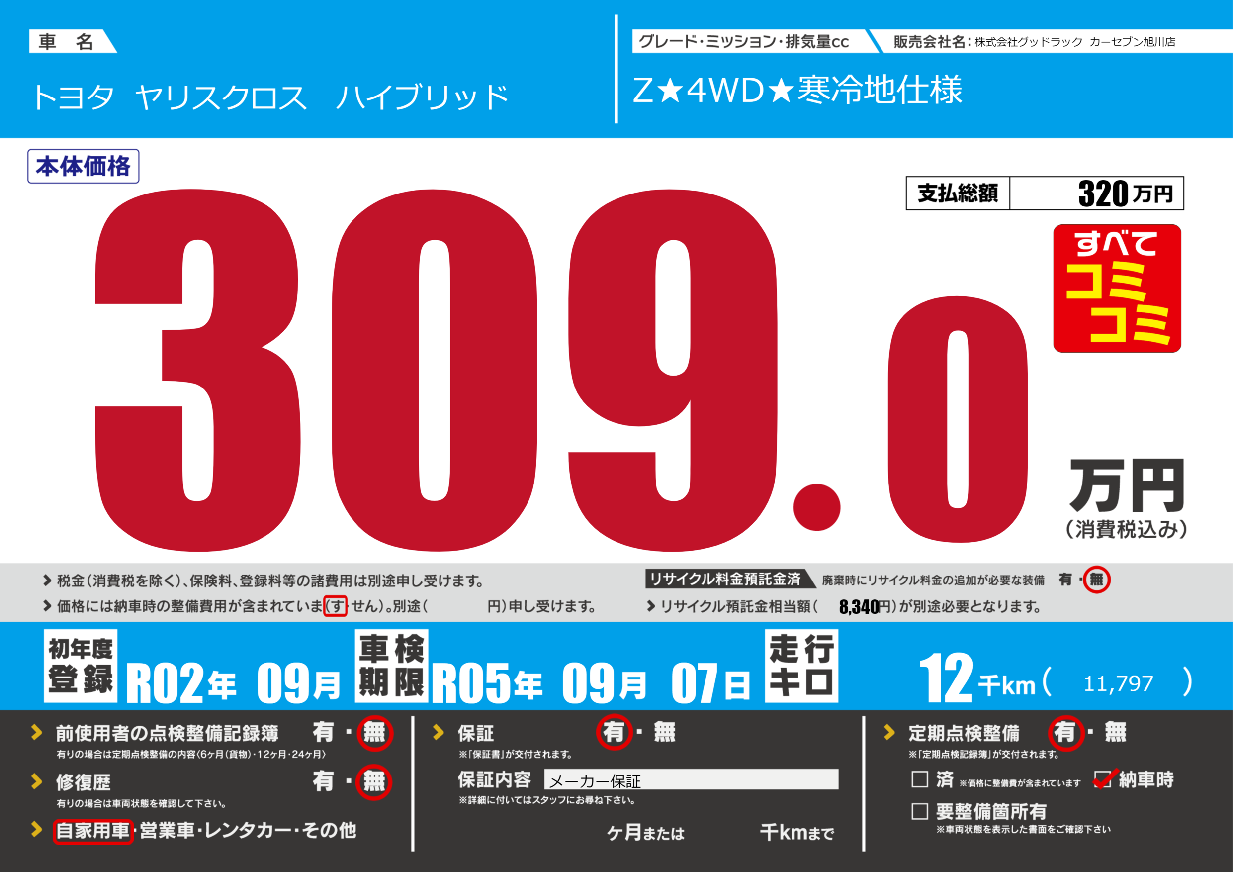 | 車検制限 | R05年 09月 07日 | ||