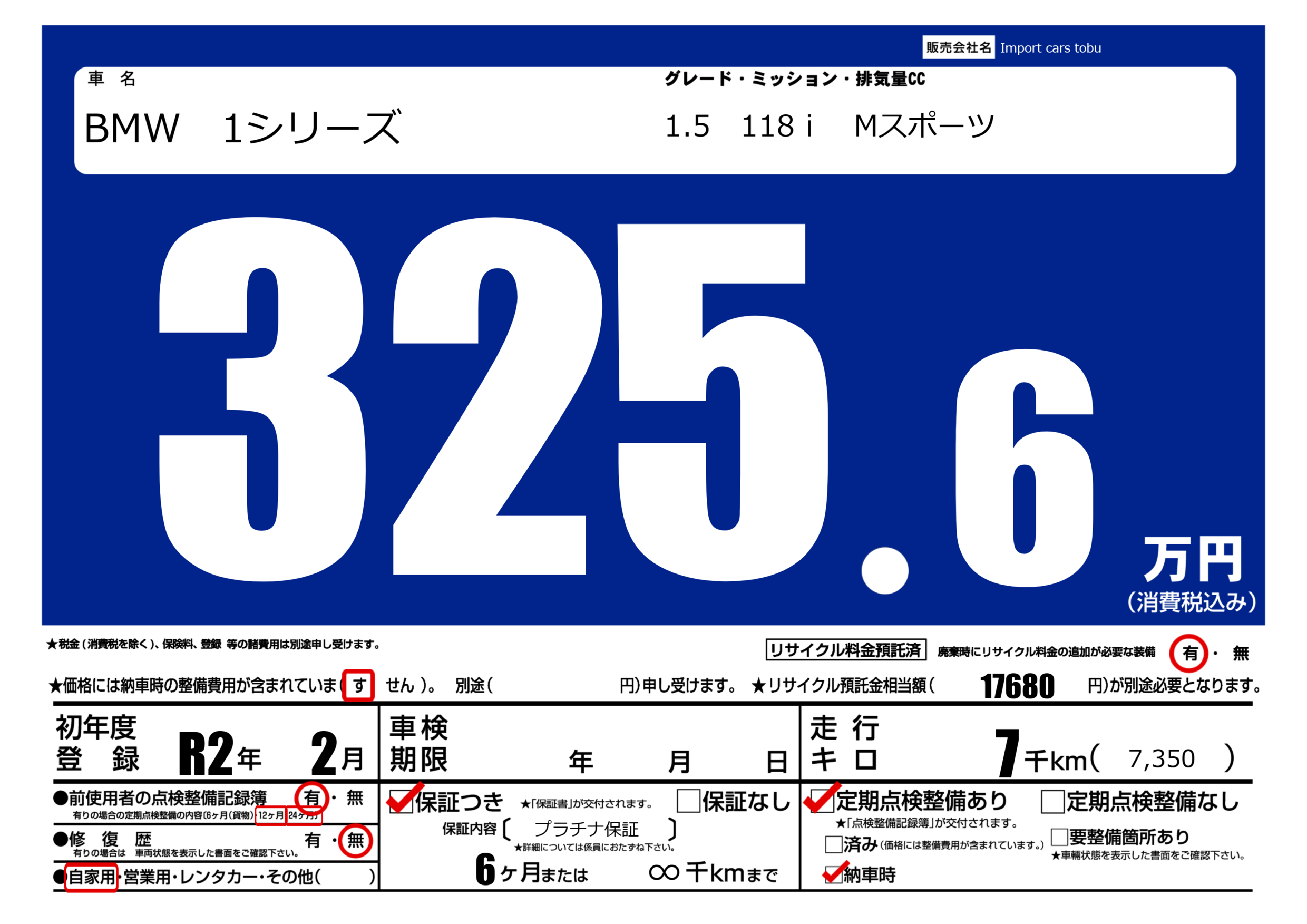 保証付き 保証内容( プラチナ保証) 6ヶ月または(∞)千kmまで |