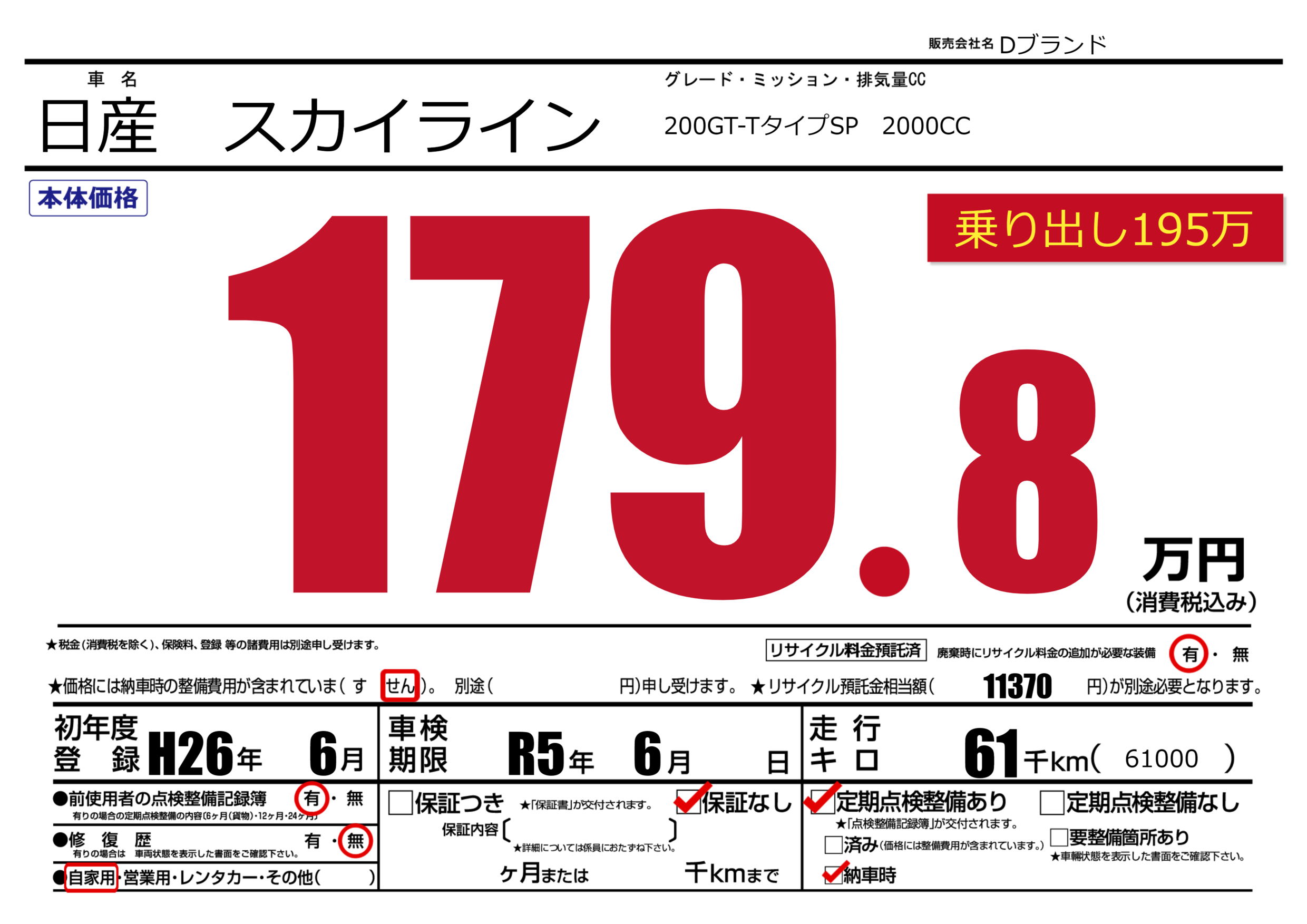 なし | 車検制限 | R5年6月---月 |