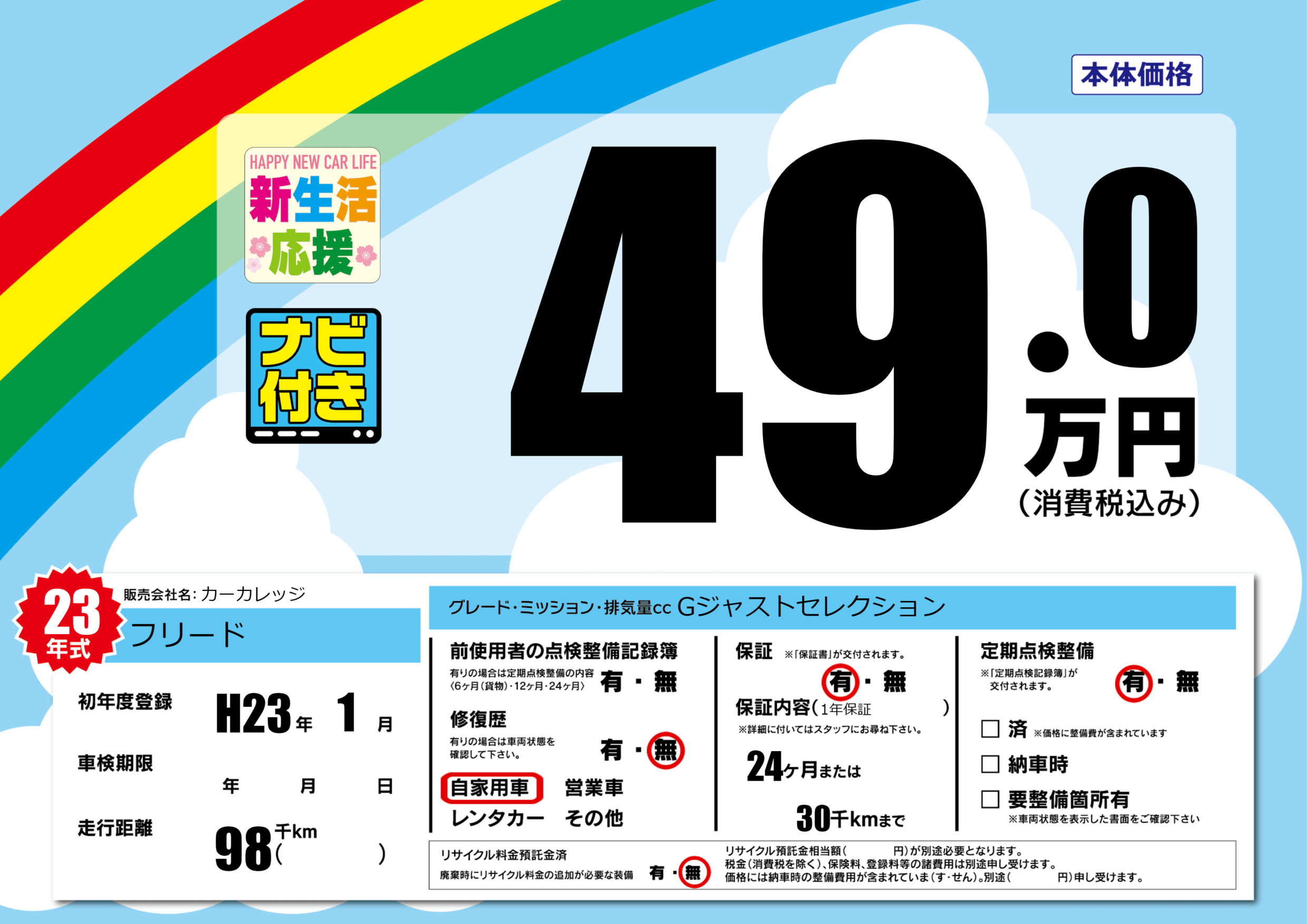| 走行キロ | 9.8万km | 初年度登録 | H23年1月 |