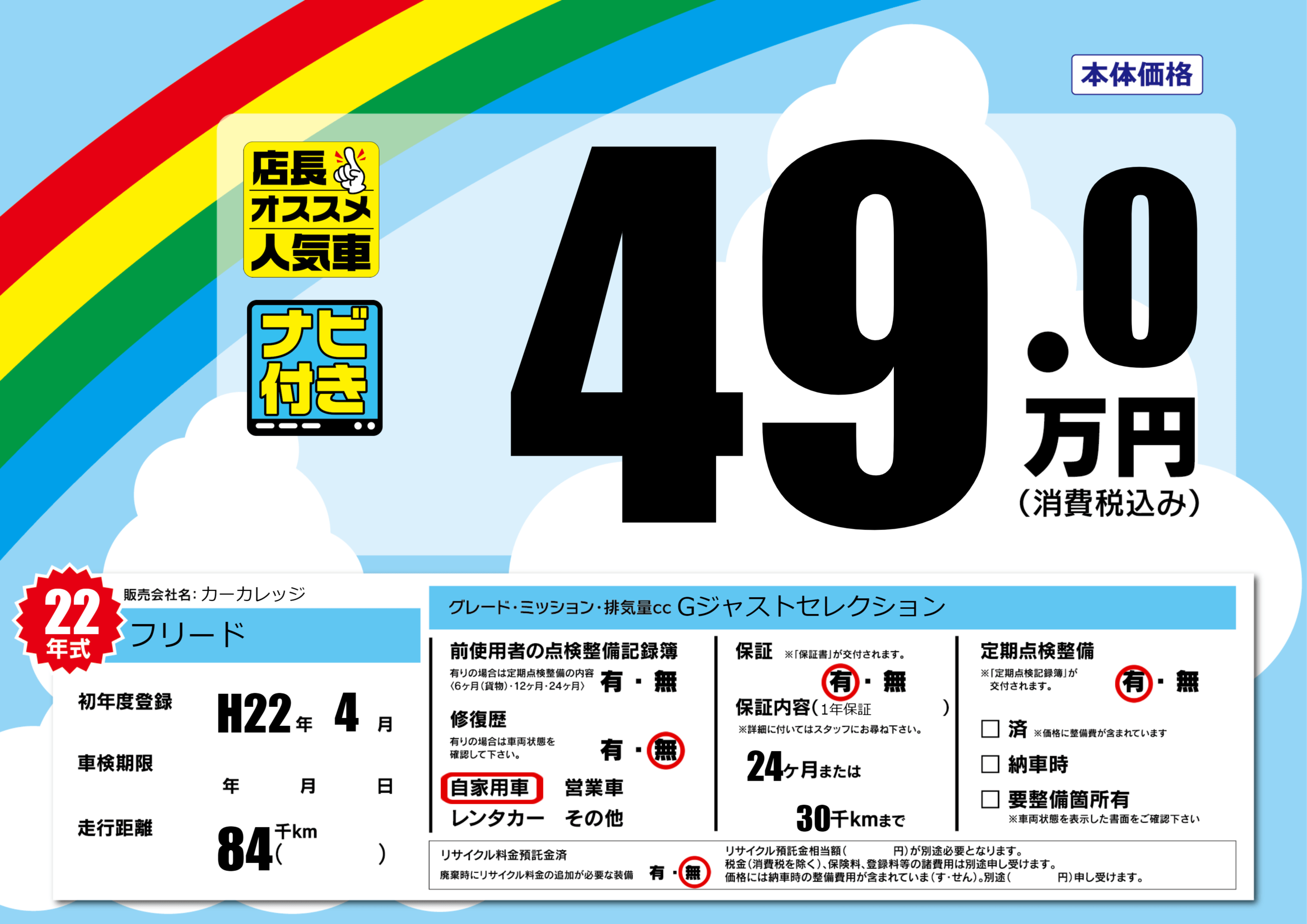 | 走行キロ | 8.4万km | 初年度登録 | H22年4月 |