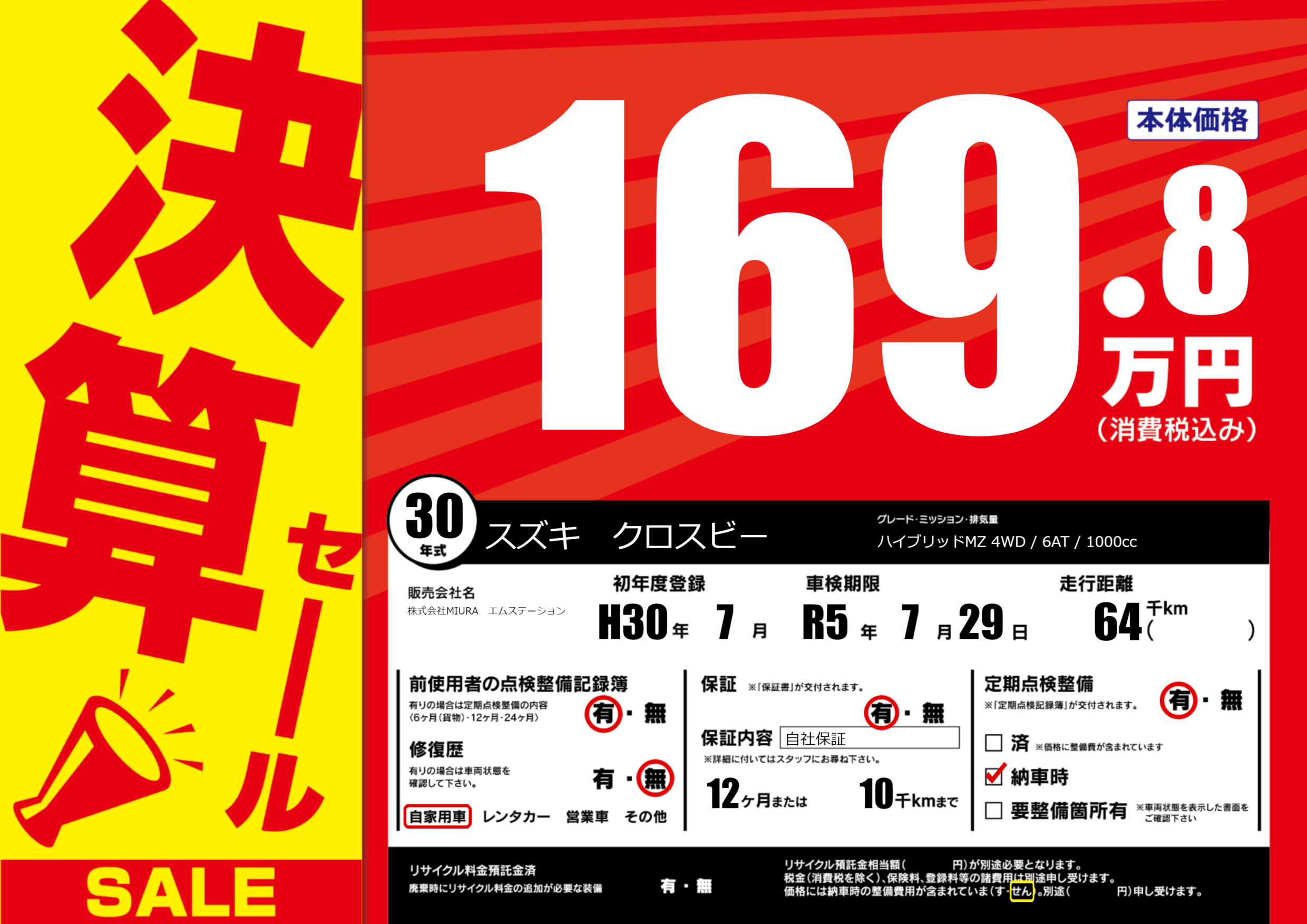 | 定期点検整備 | 定期点検整備あり 納車時あり | ||