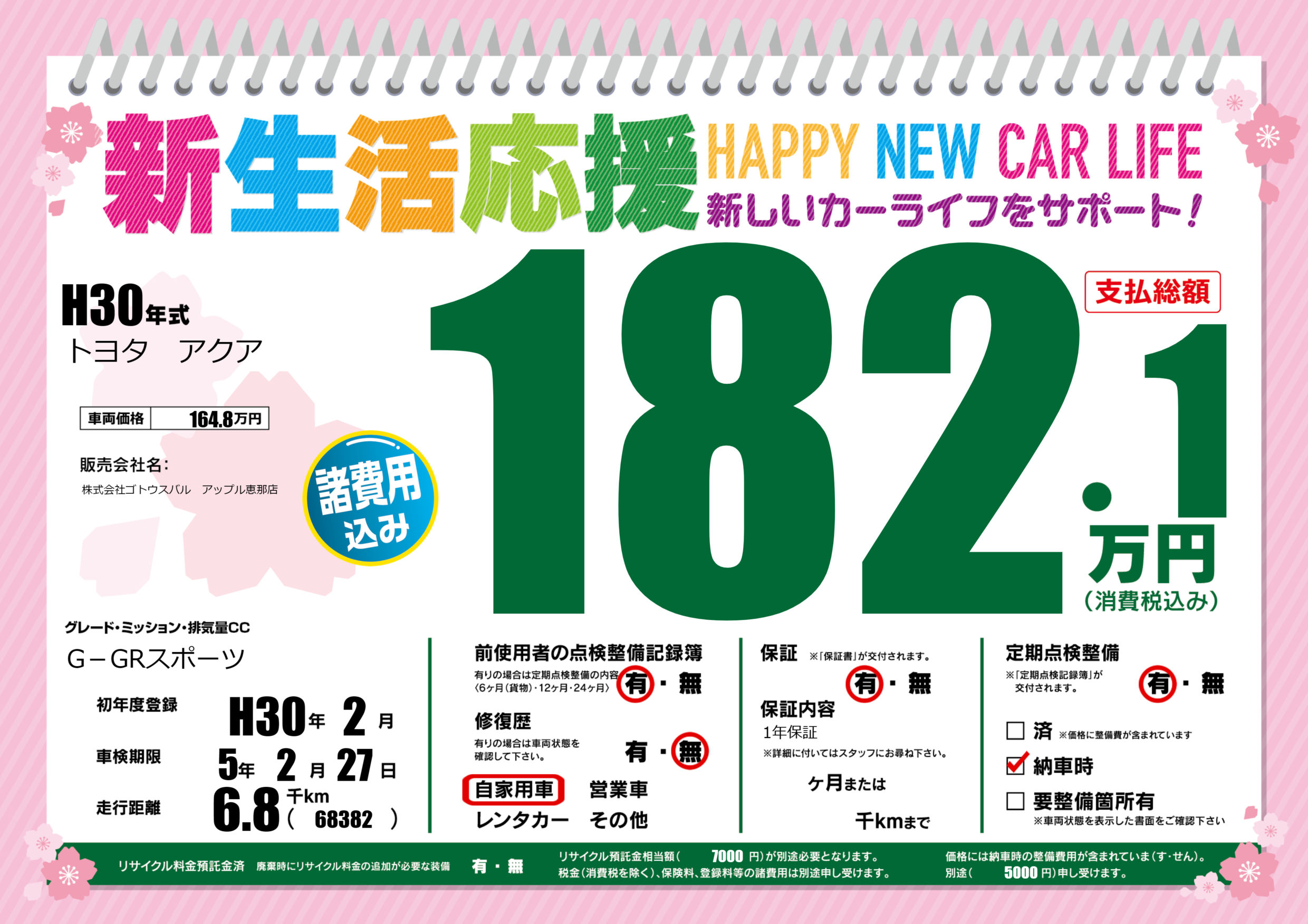 | 初年度登録 | H30年2月 | ||