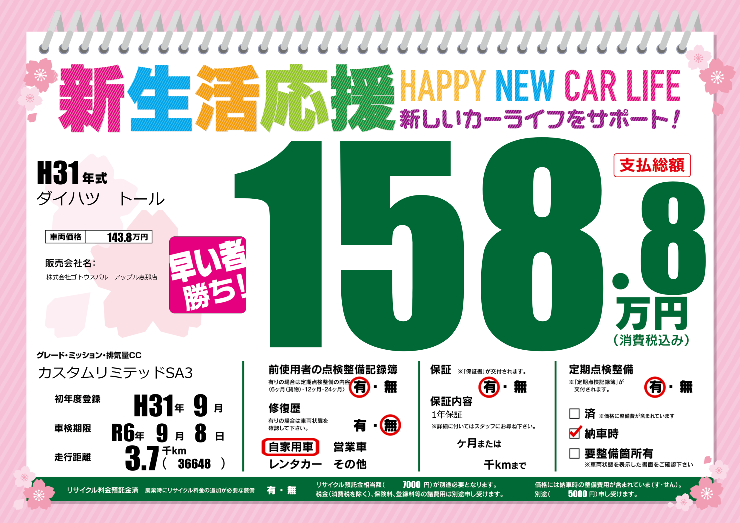 | 車検制限 | R6年 9月 8日 | ||
