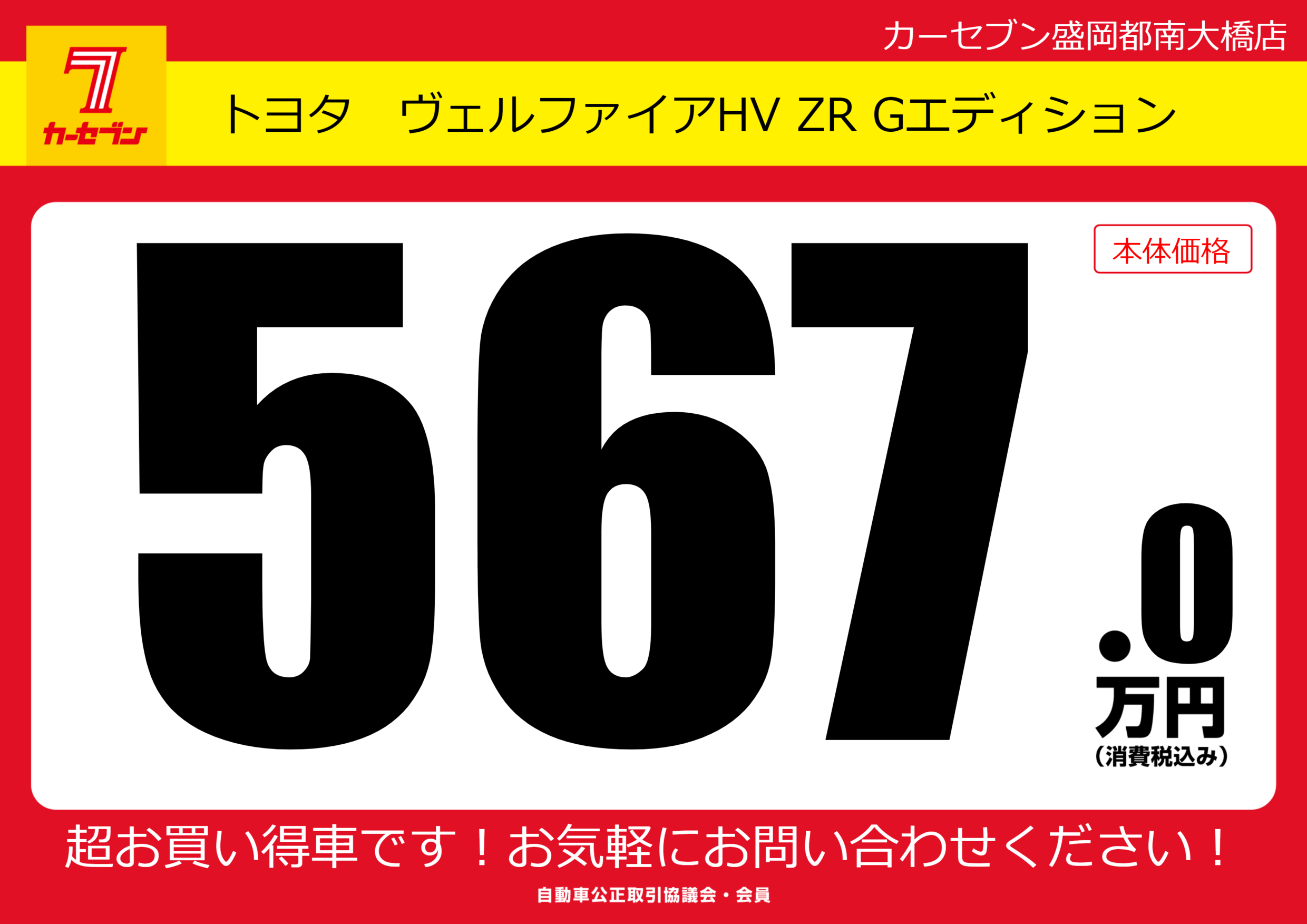 | 車名 | トヨタ ヴェルファイアHV ZR Gエディション | グレード ミッション 排気量 |