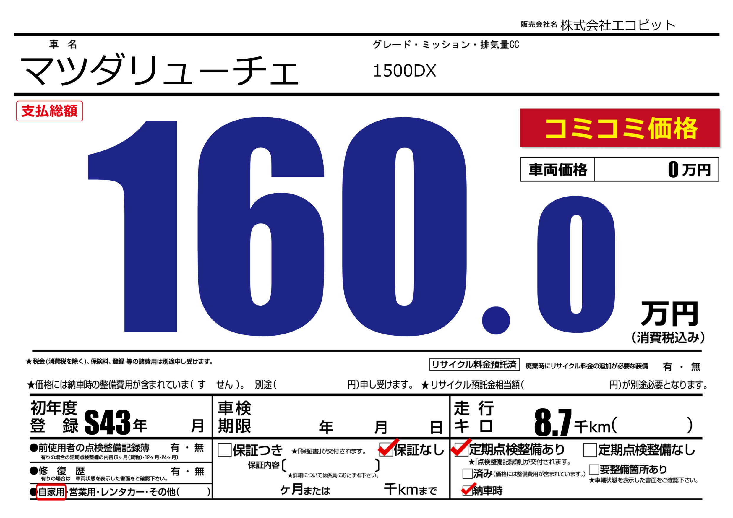| 車検制限 | - 年 - 月 - 日 | ||