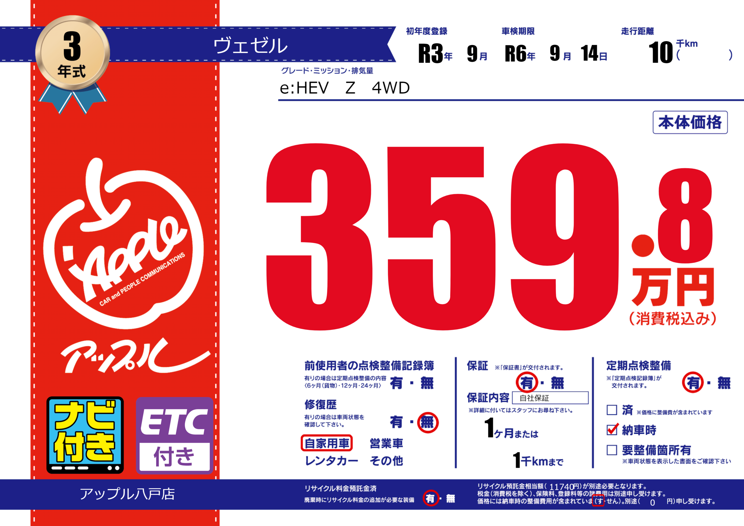 | 走行キロ | 1万km | 初年度登録 | R3年9月 |