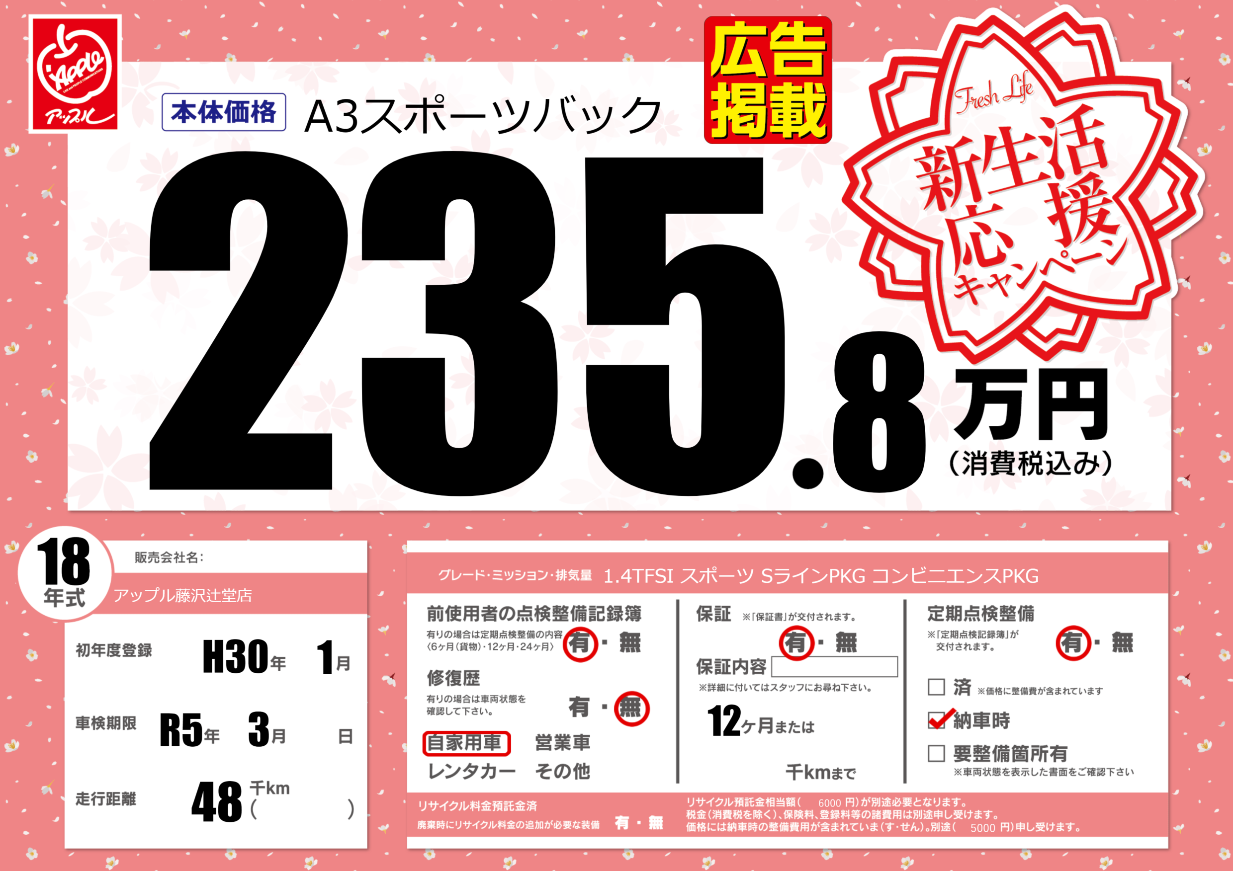 | 車名 | A3スポーツバック | グレード ミッション 排気量 |