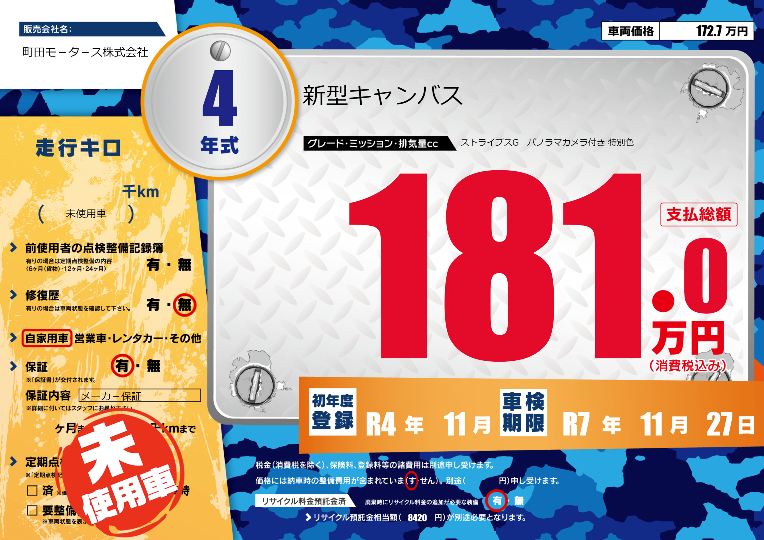 あり | 車検制限 | R7年11月27月 |