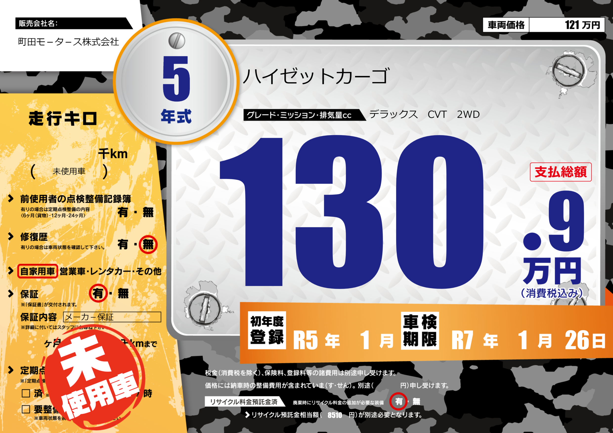| 走行キロ | - | 初年度登録 | R5年1月 |
