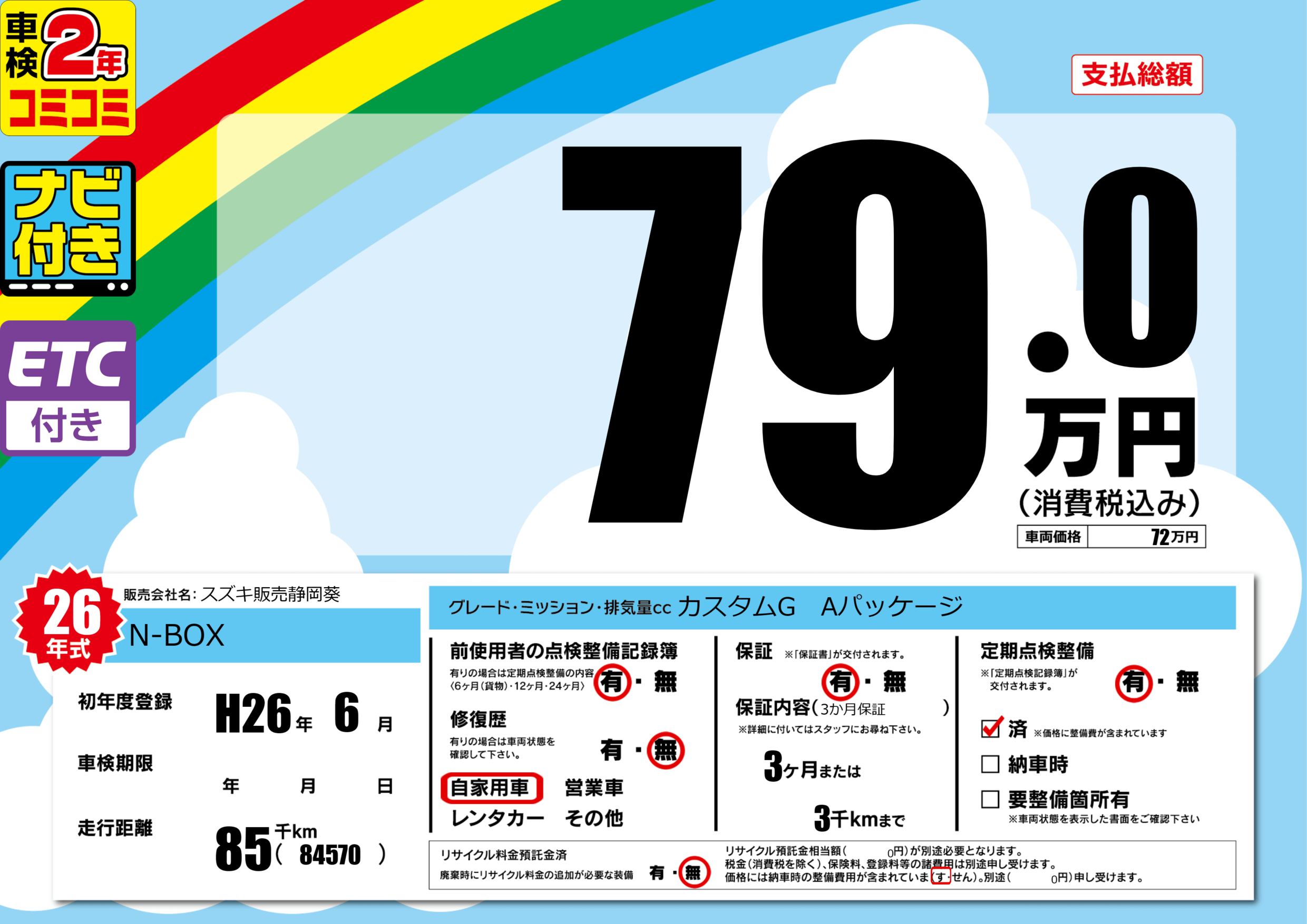 | 定期点検整備 | 定期点検整備あり 定期点検整備済み | ||