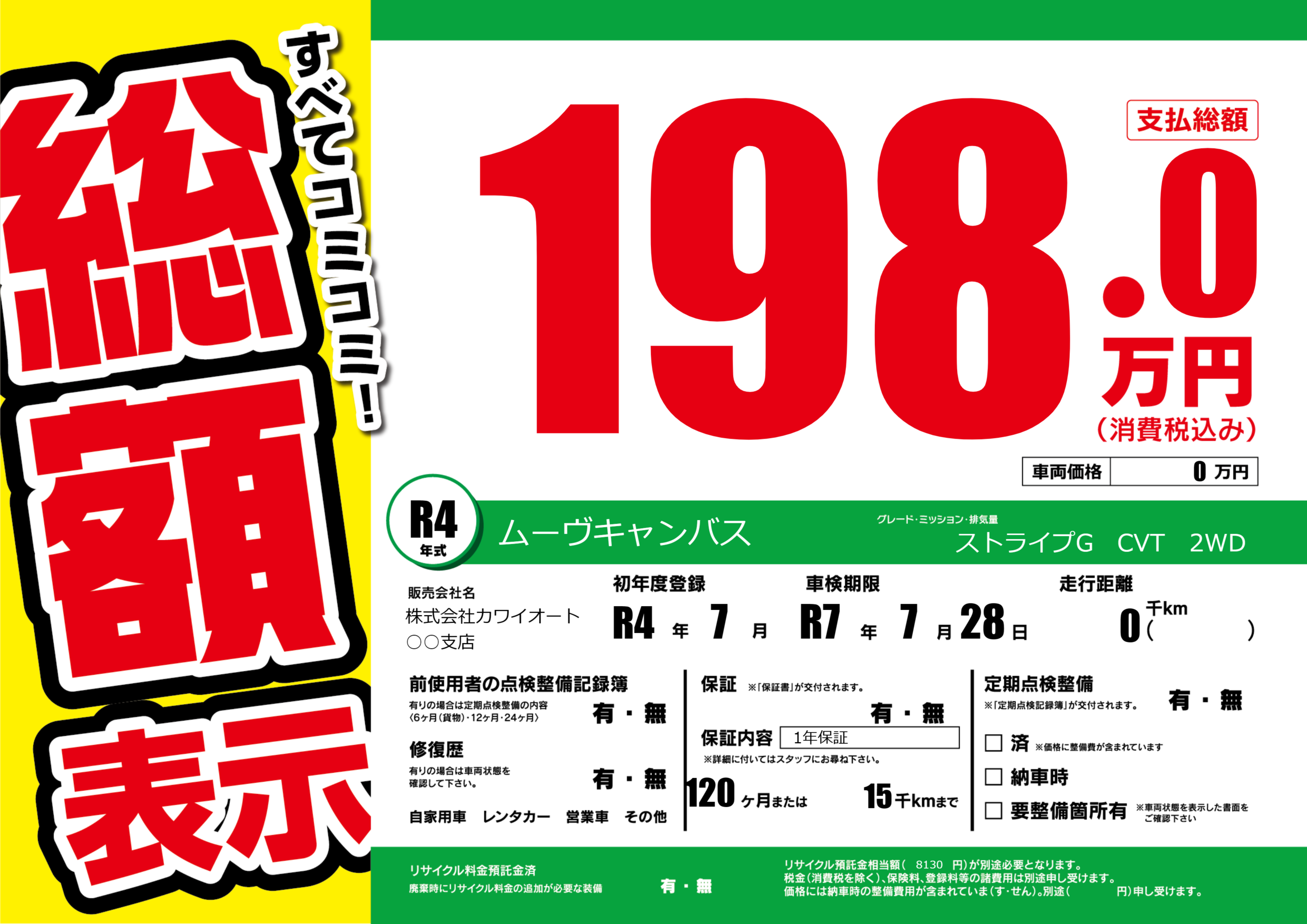 保証なし 保証内容(1年保証) 120ヶ月または(15)千kmまで |