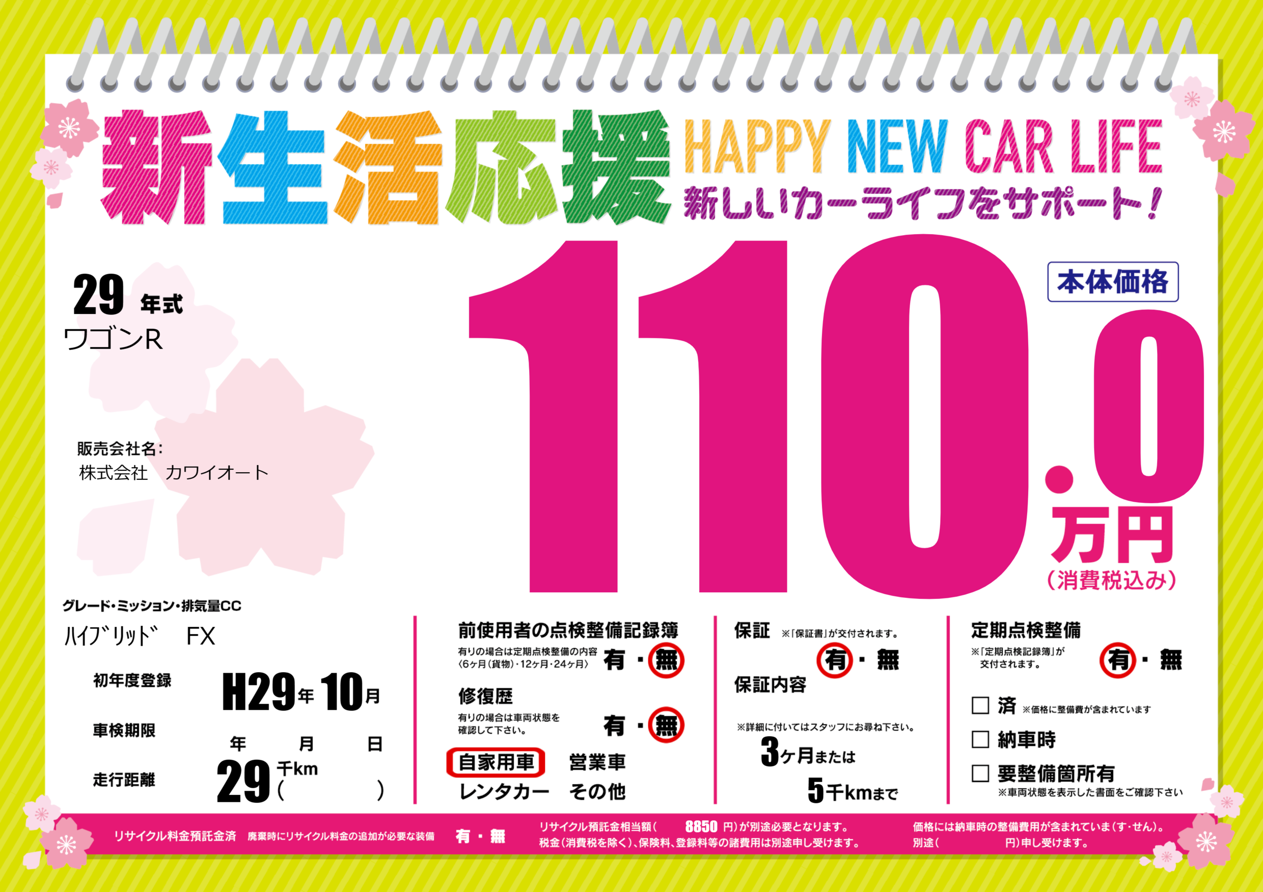 | 車名 | ワゴンR | グレード ミッション 排気量 |