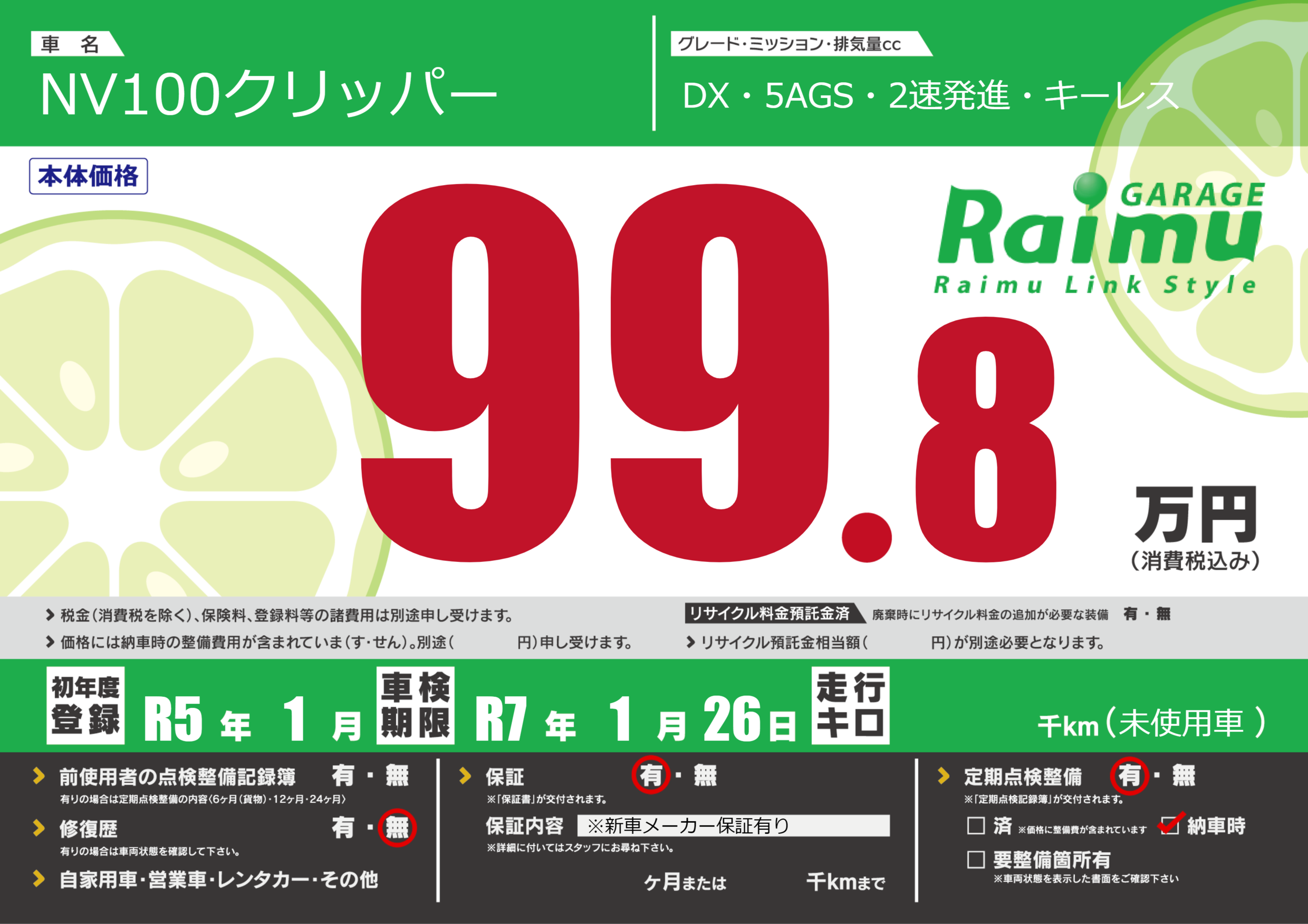 定期点検整備 定期点検整備あり 納車時あり