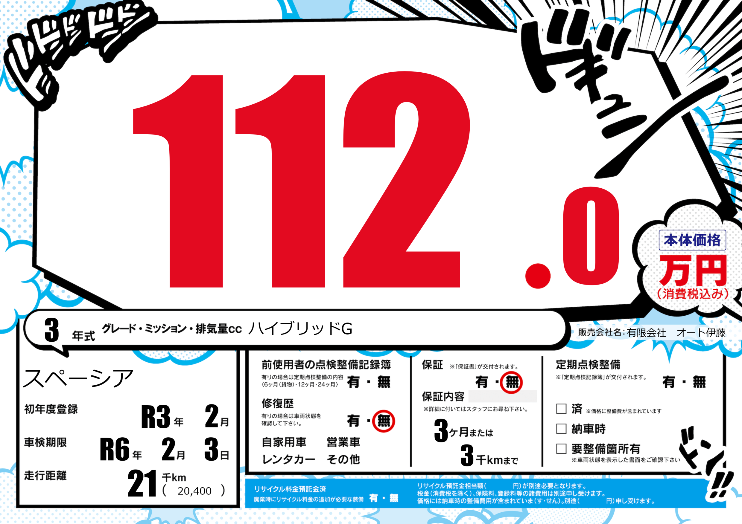 | 車名 | スペーシア | グレード ミッション 排気量 |
