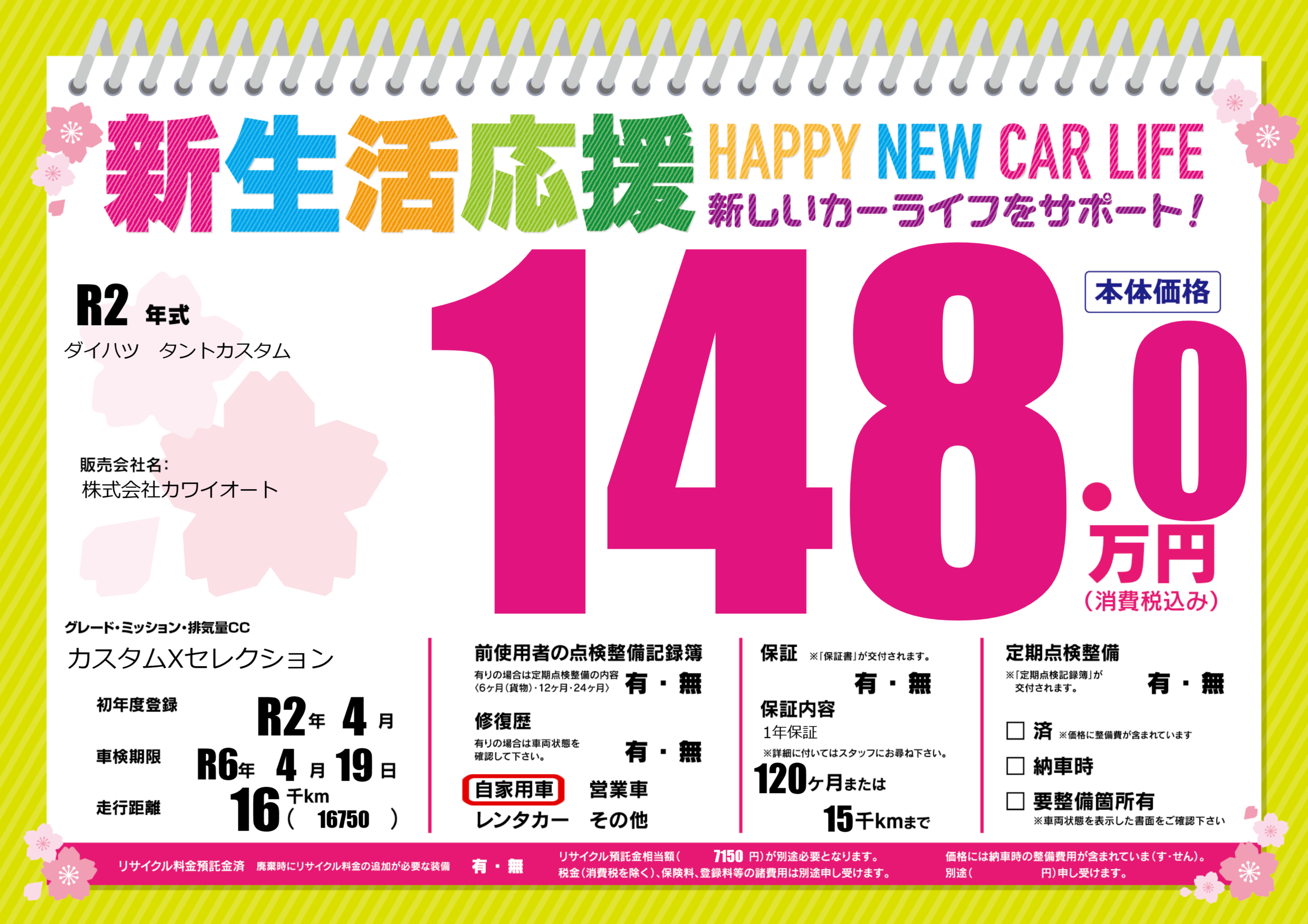 | 車検制限 | R6年 4月 19日 | ||