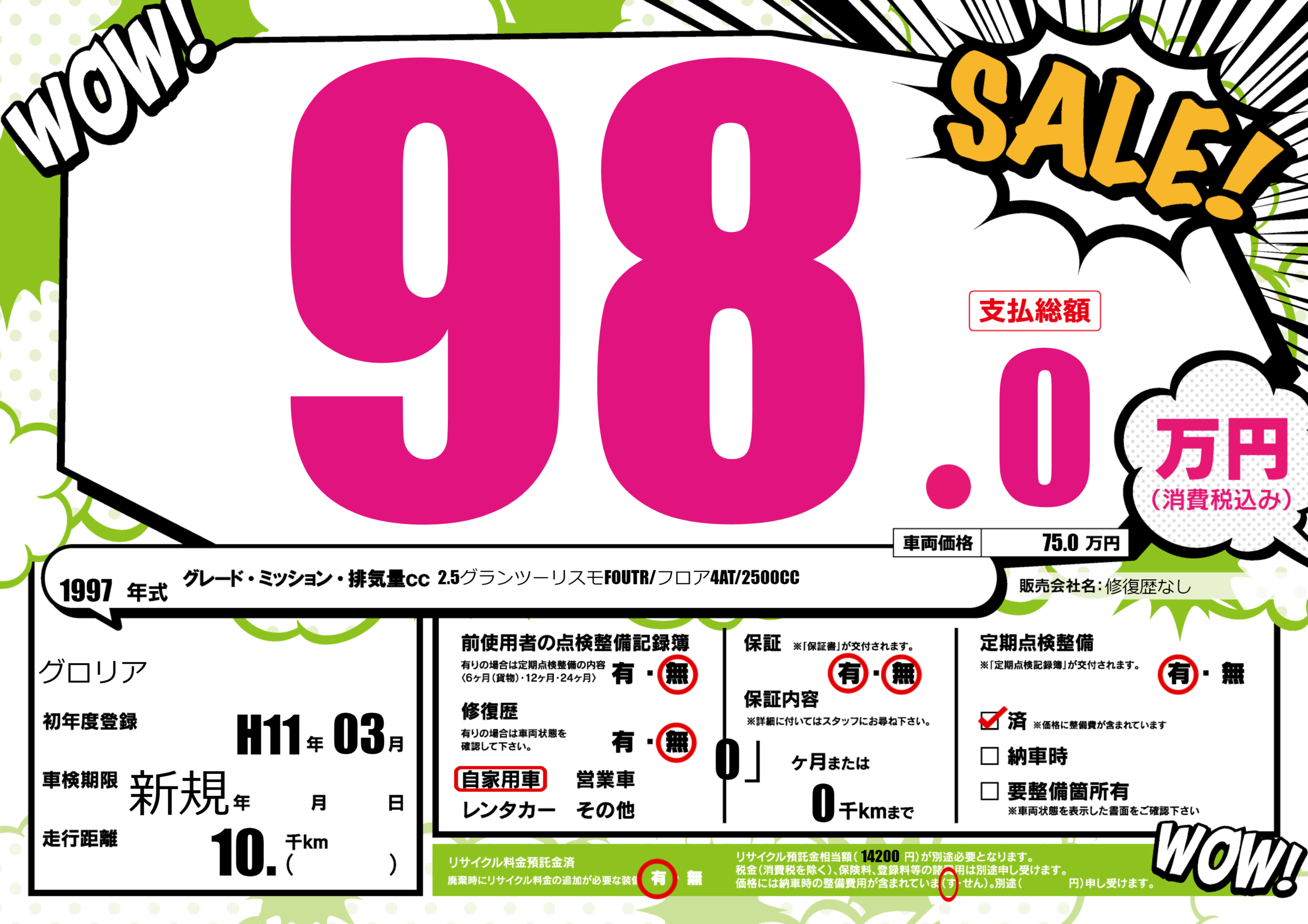 | 定期点検整備 | 定期点検整備あり 定期点検整備済み | ||