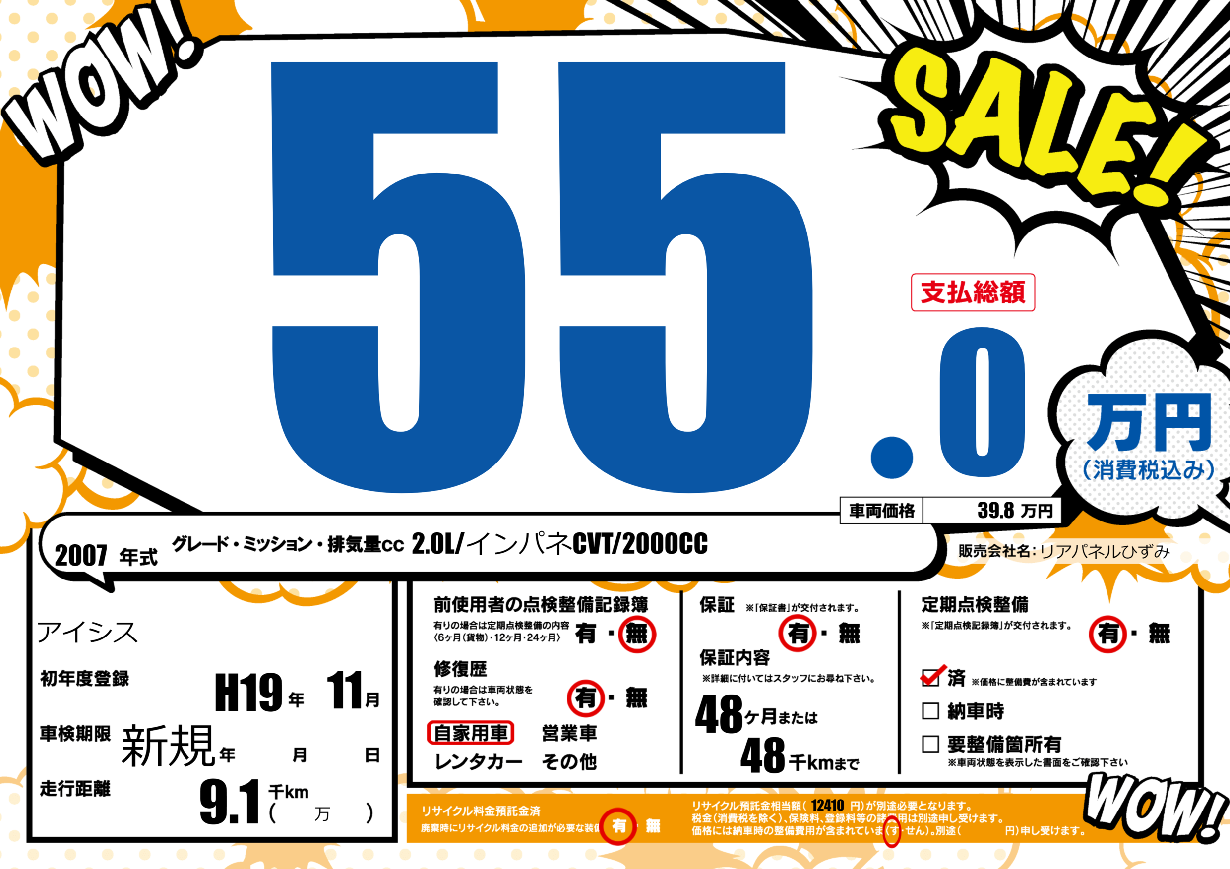 | 定期点検整備 | 定期点検整備あり 定期点検整備済み | ||