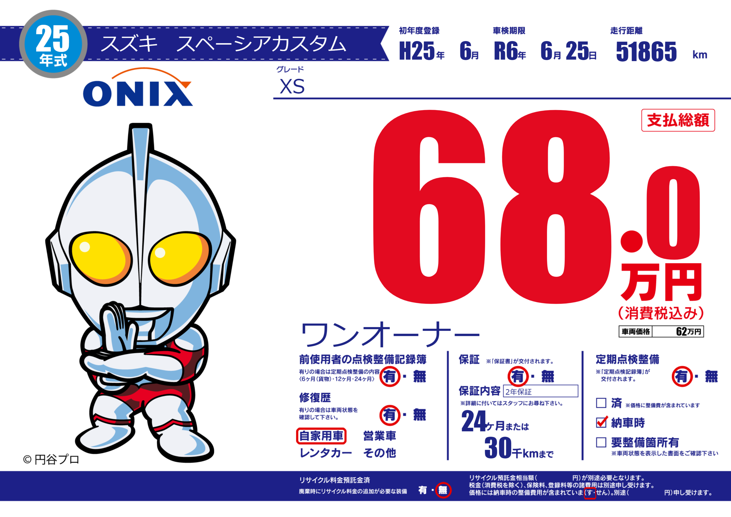| 走行キロ | 5186.5万km | 初年度登録 | H25年6月 |