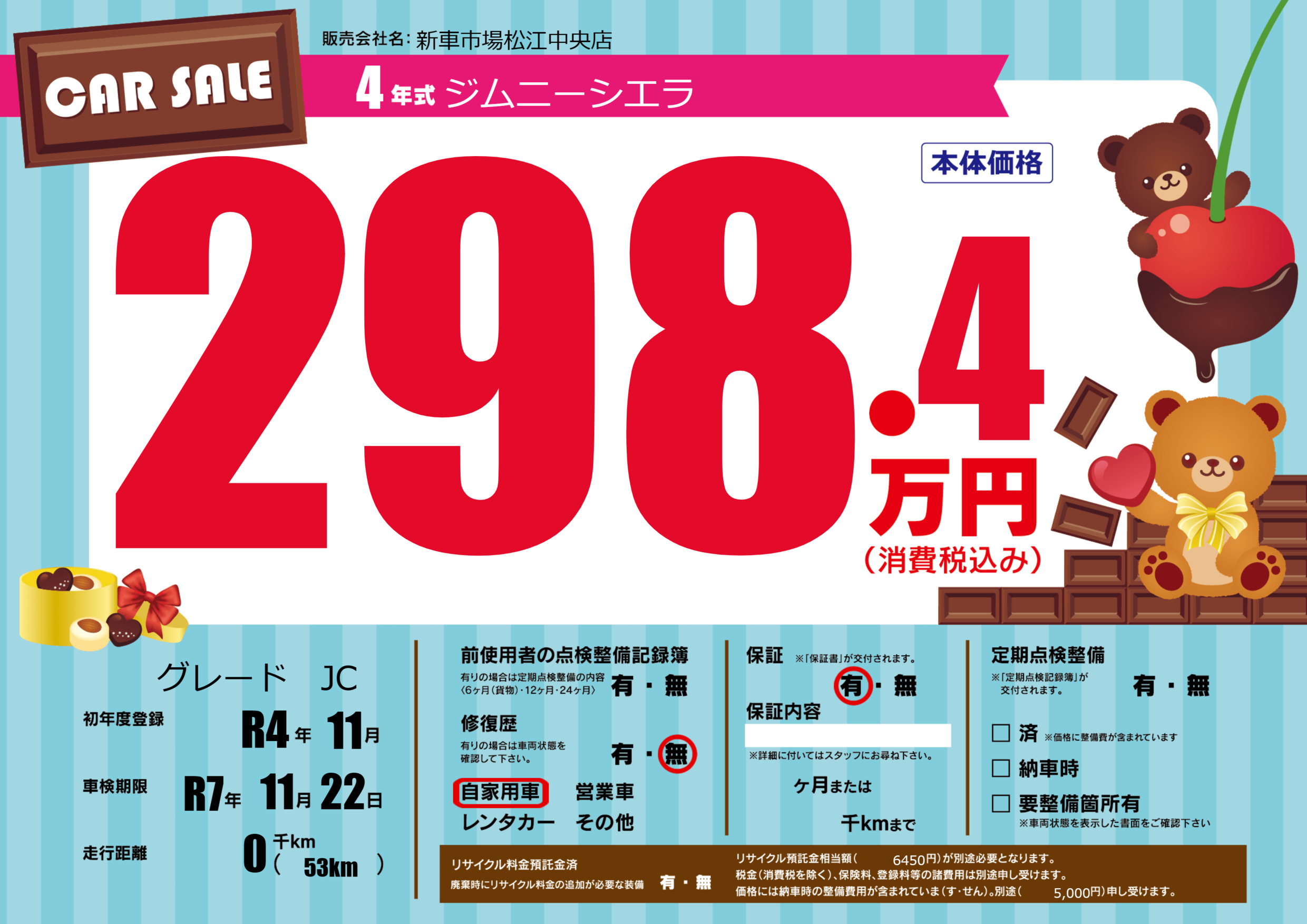 | 車名 | ジムニーシエラ | グレード ミッション 排気量 |