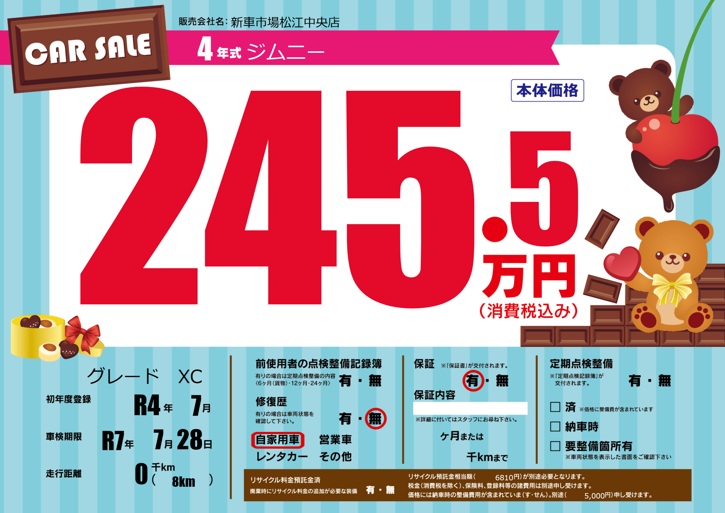 | 車名 | ジムニー | グレード ミッション 排気量 |