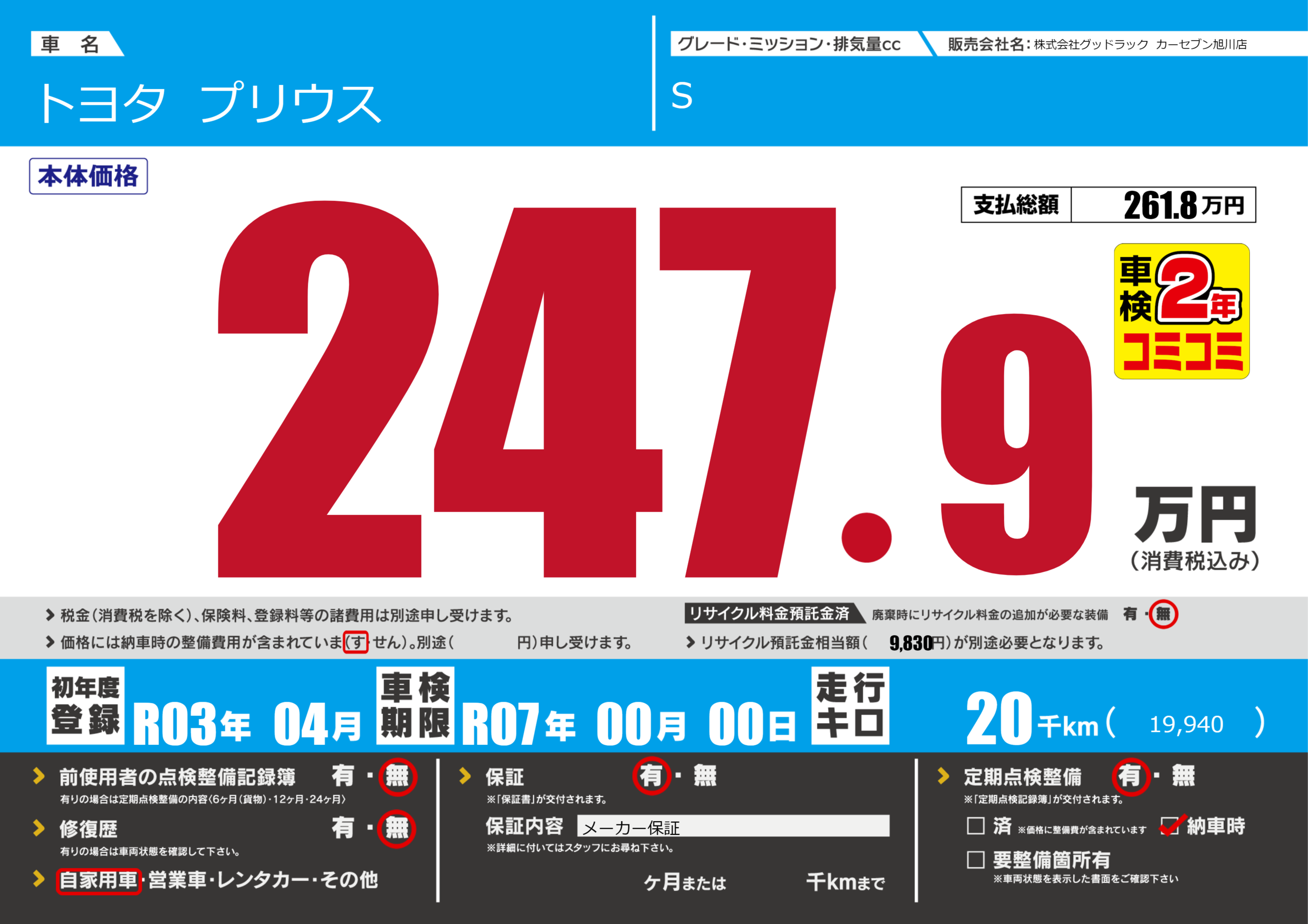 | 車検制限 | R07年 00月 00日 | ||