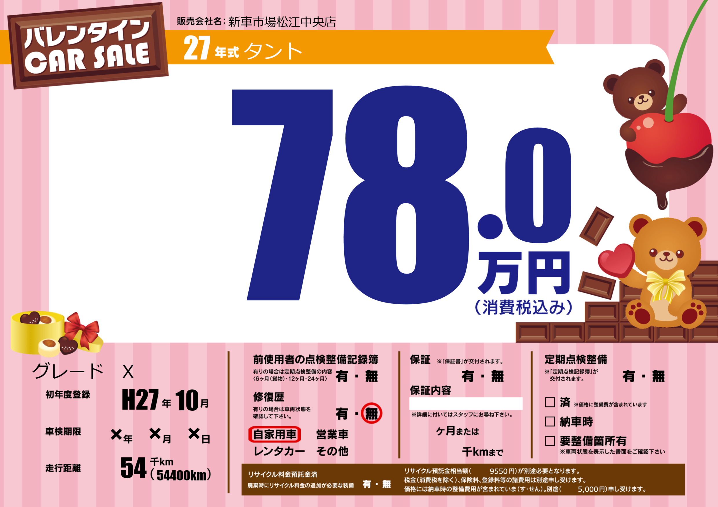 | 走行キロ | 5.4万km | 初年度登録 | H27年10月 |
