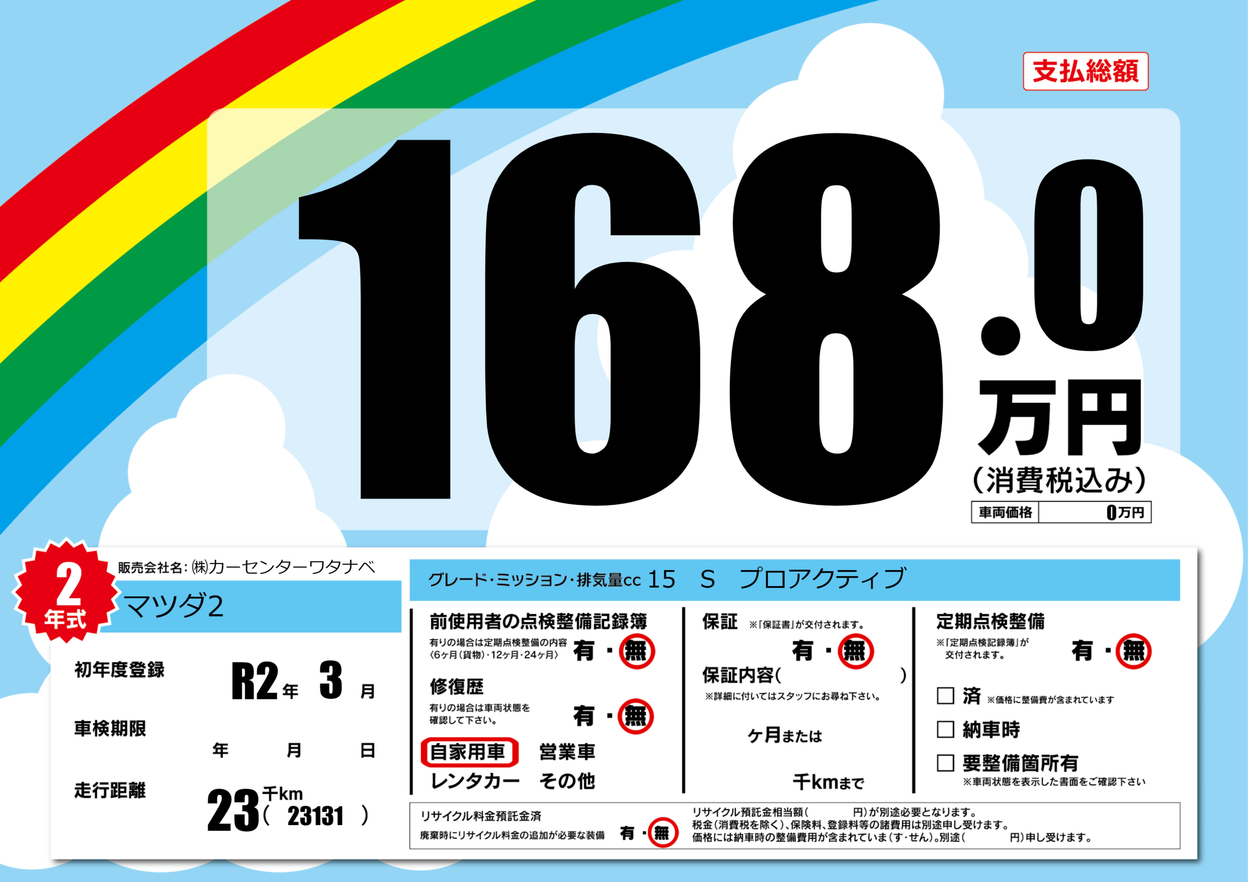 | 走行キロ | 2.3万km | 初年度登録 | R2年3月 |