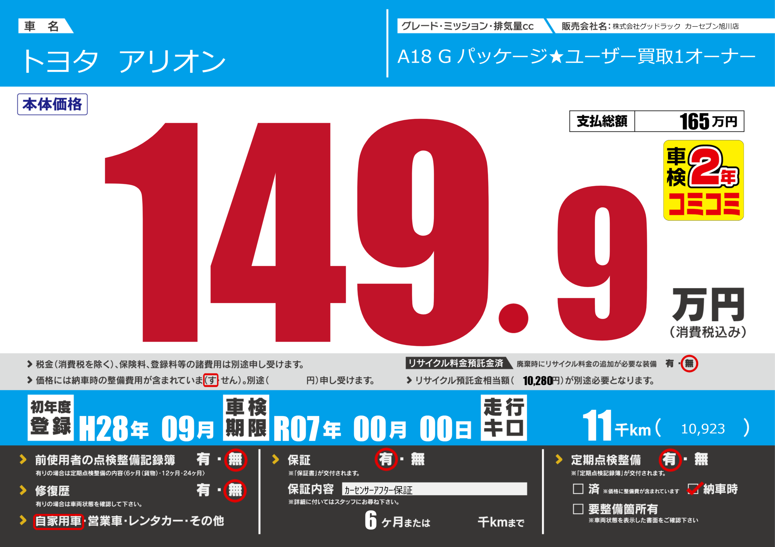 | 定期点検整備 | 定期点検整備あり 納車時あり | ||