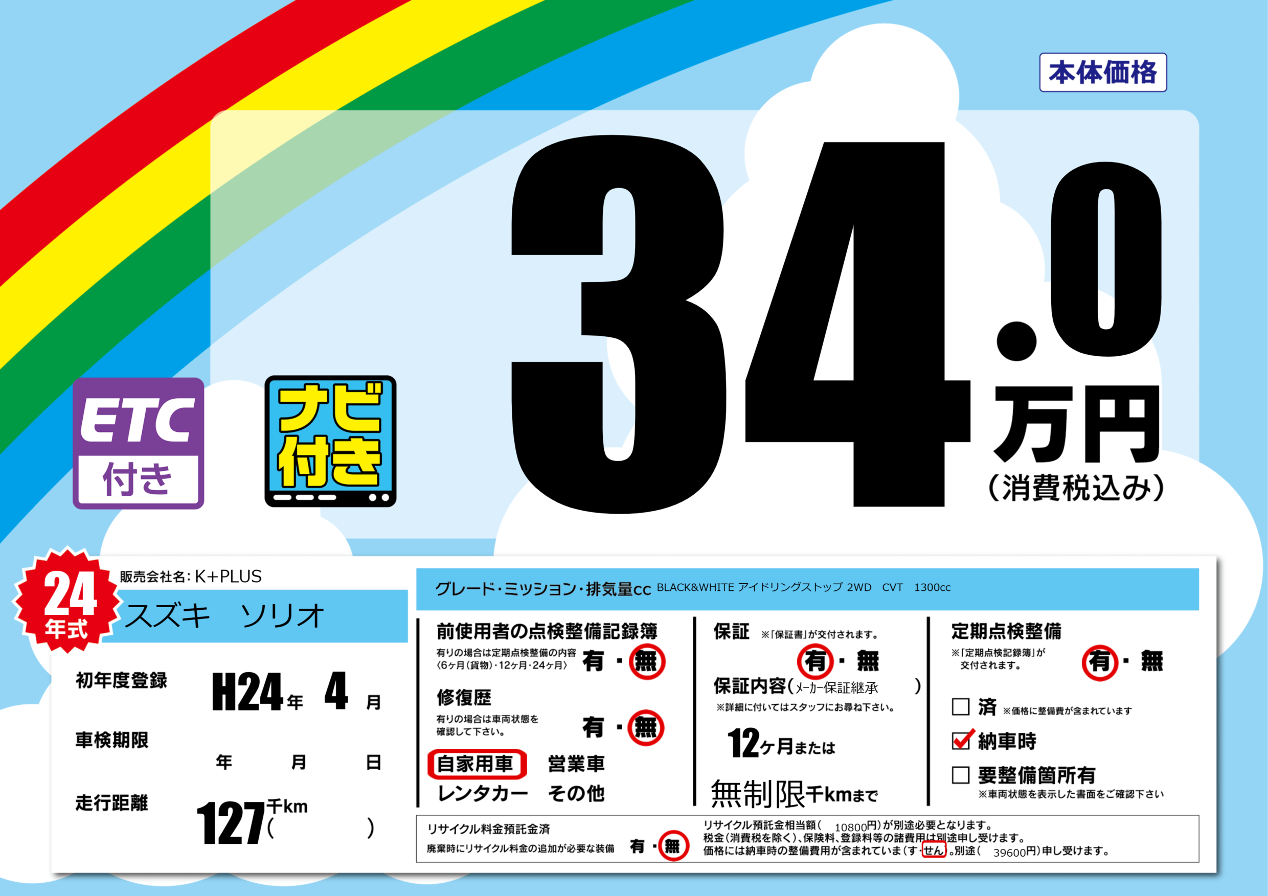 | 走行キロ | 12.7万km | 初年度登録 | H24年4月 |