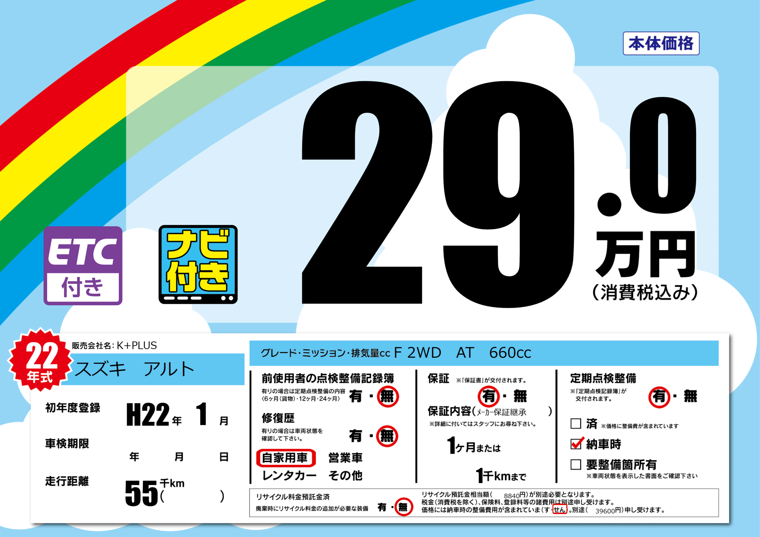 保証内容(メーカー保証継承) 1ヶ月または1千km
