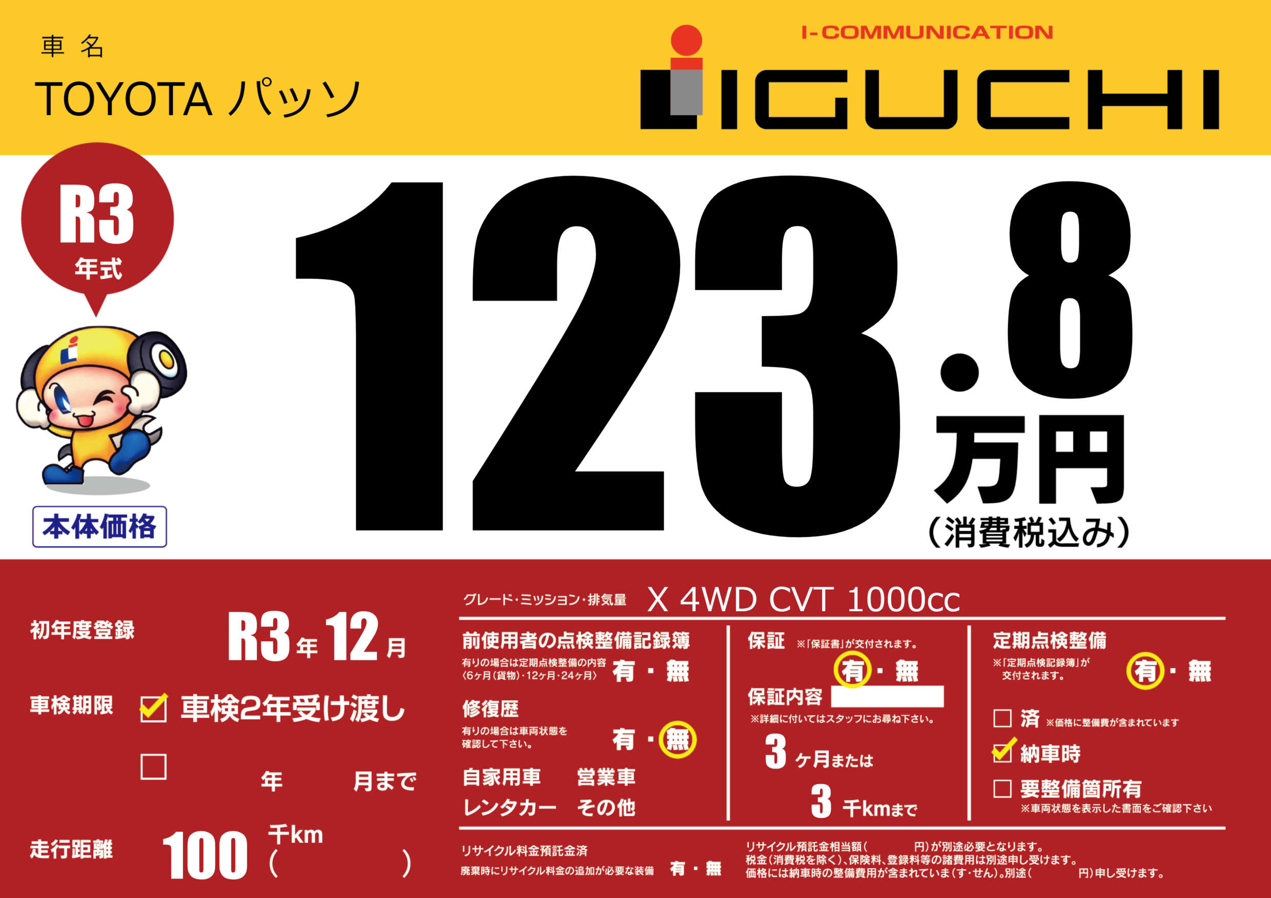 保証付き 保証内容(---) 3ヶ月または(3)千kmまで |