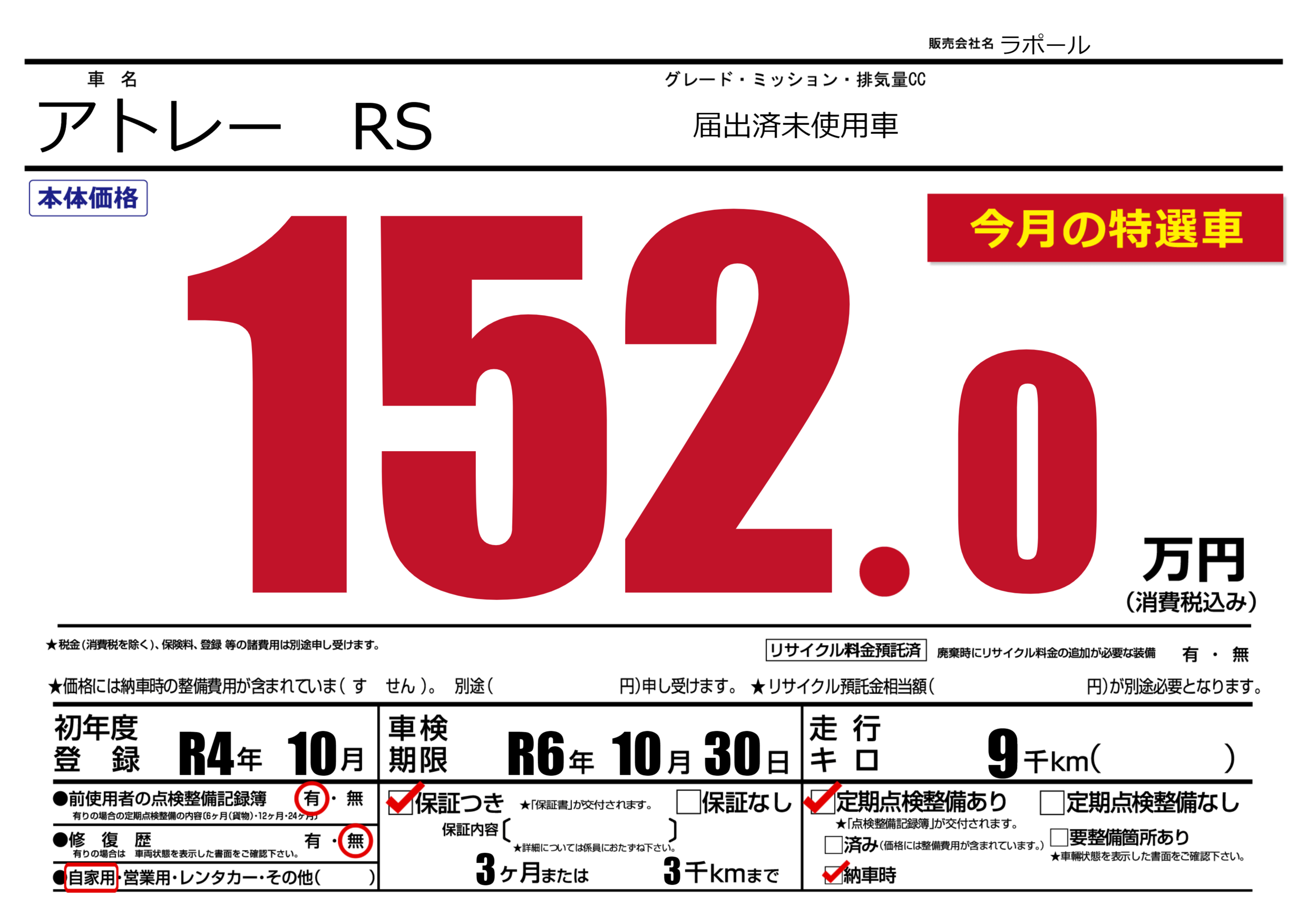 届出済未使用車 |