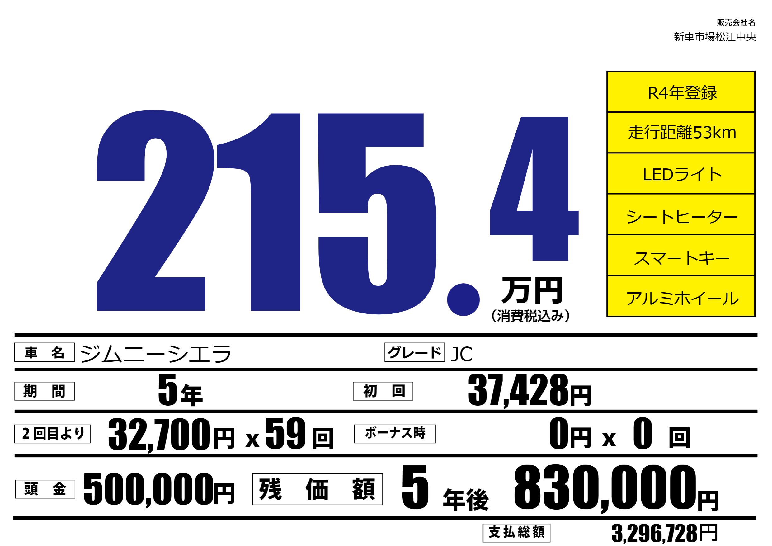 | 車名 | ジムニーシエラ | グレード ミッション 排気量 |