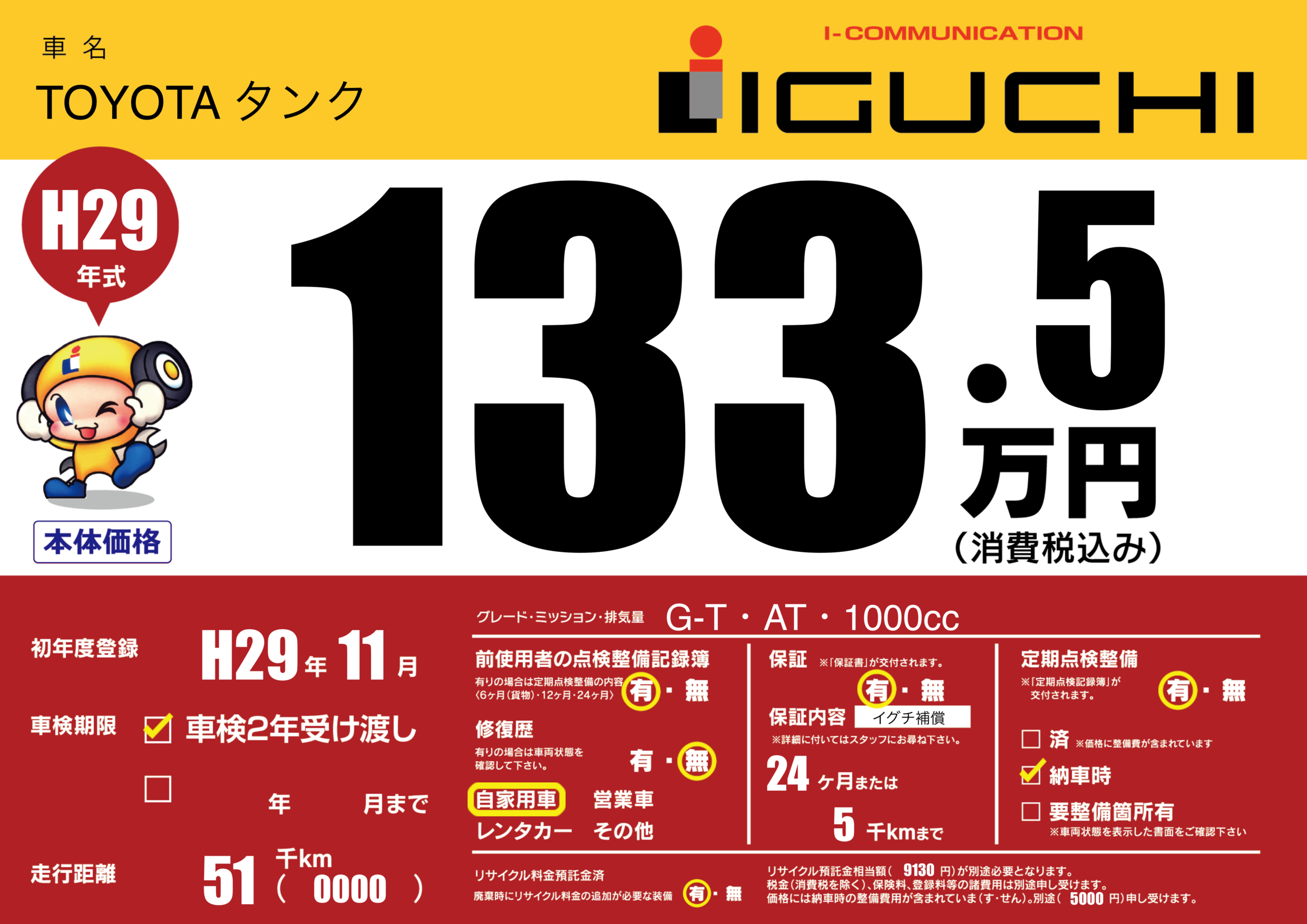 保証内容(イグチ補償) 24ヶ月または5千km