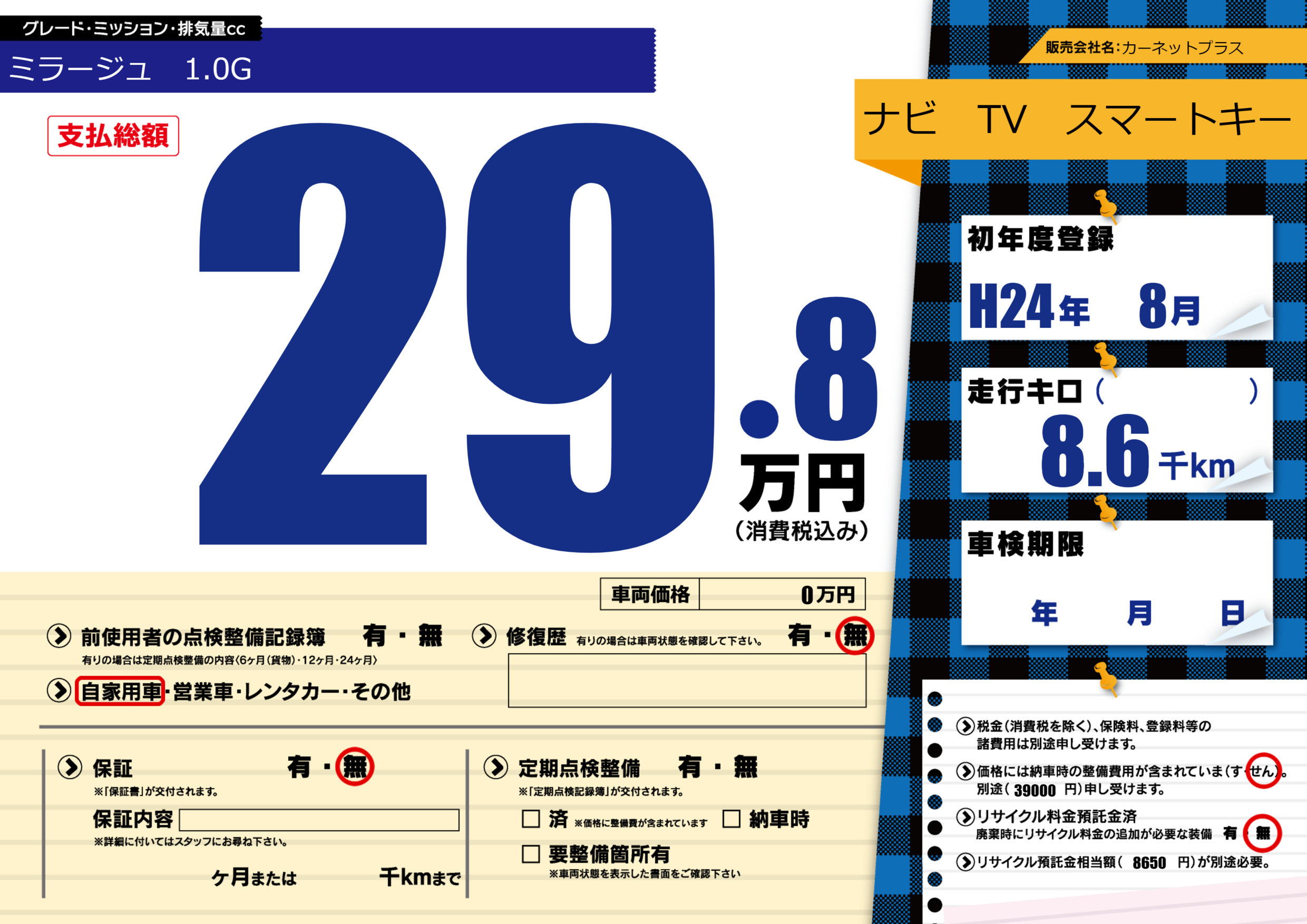 | 納車時の 整備費用 |