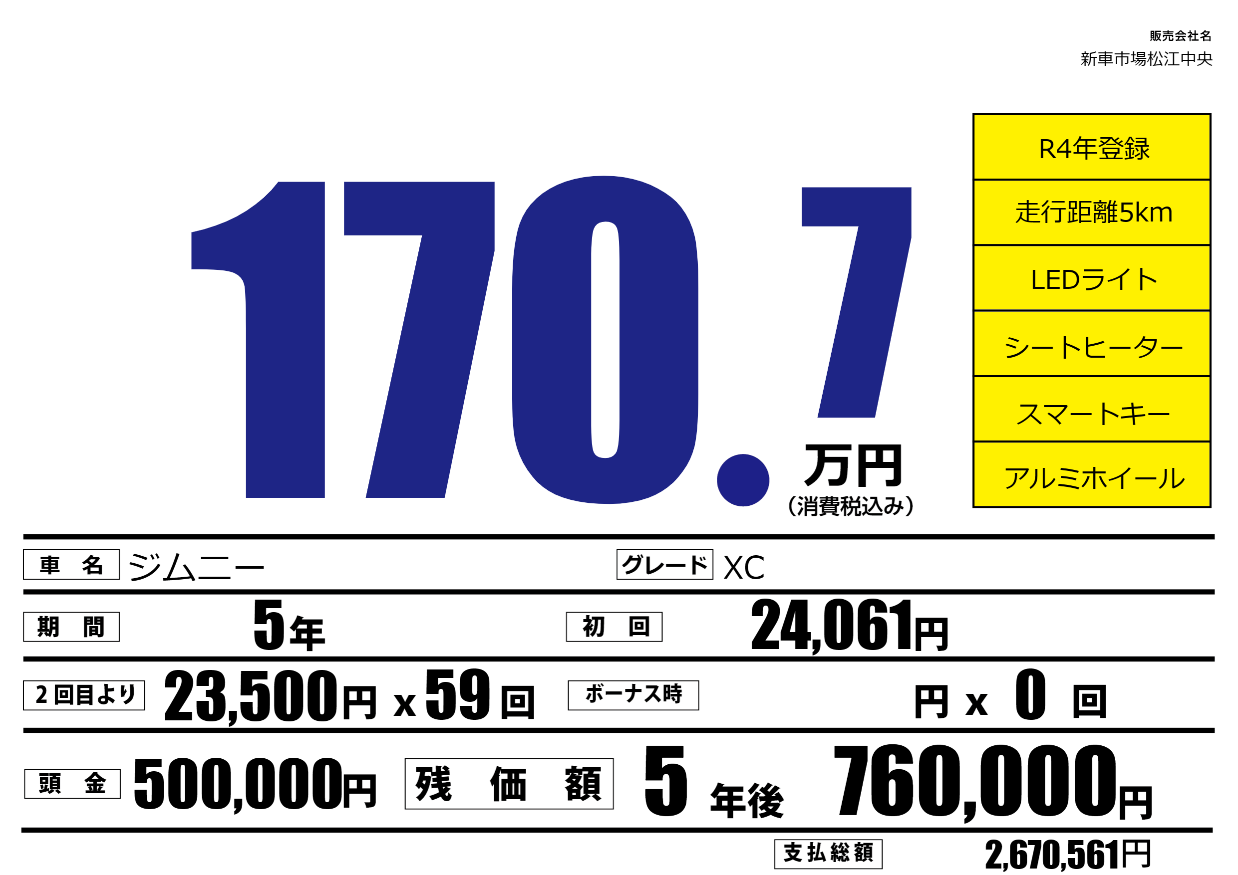 | 車名 | ジムニー | グレード ミッション 排気量 |