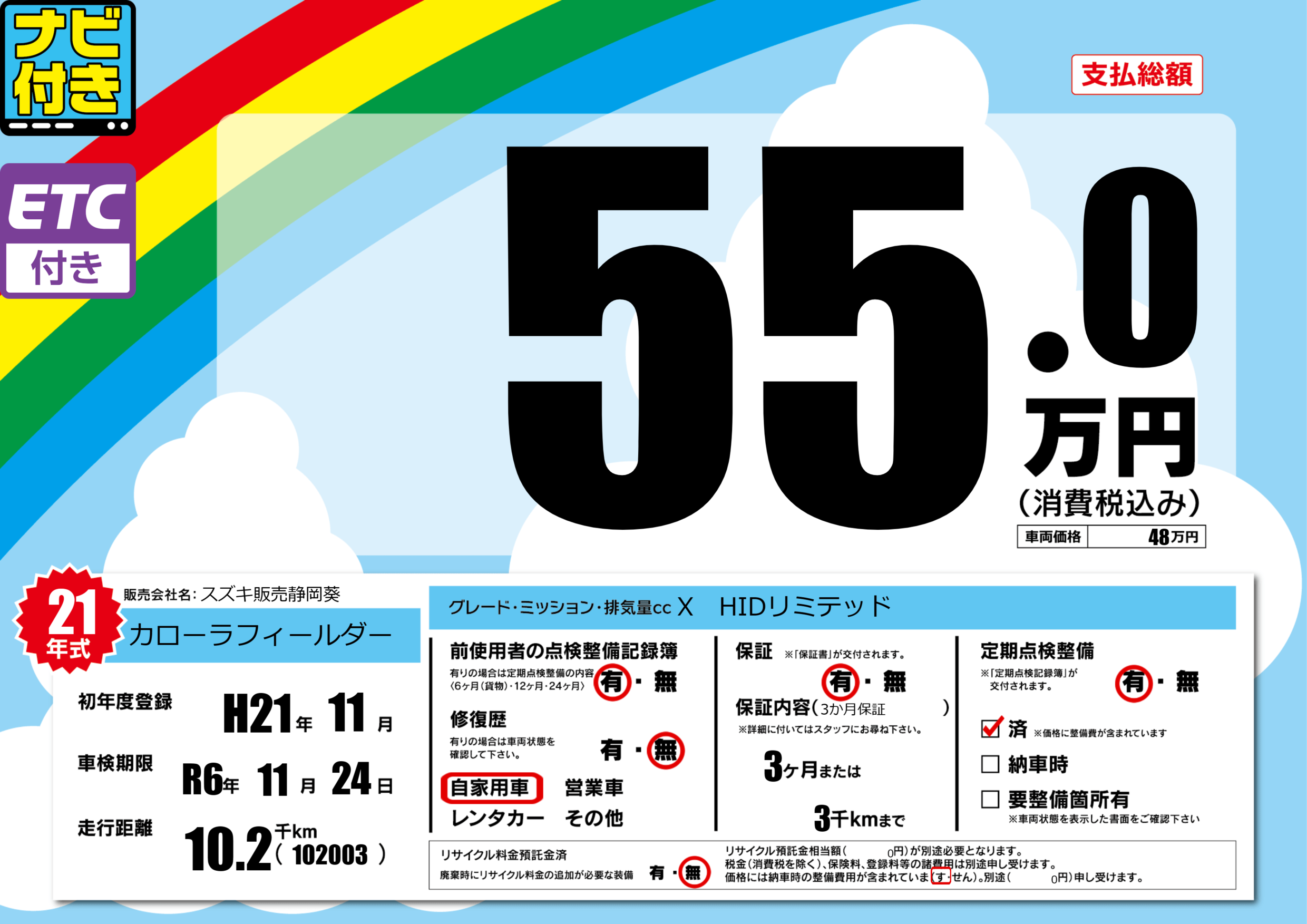 | 定期点検整備 | 定期点検整備あり 定期点検整備済み | ||