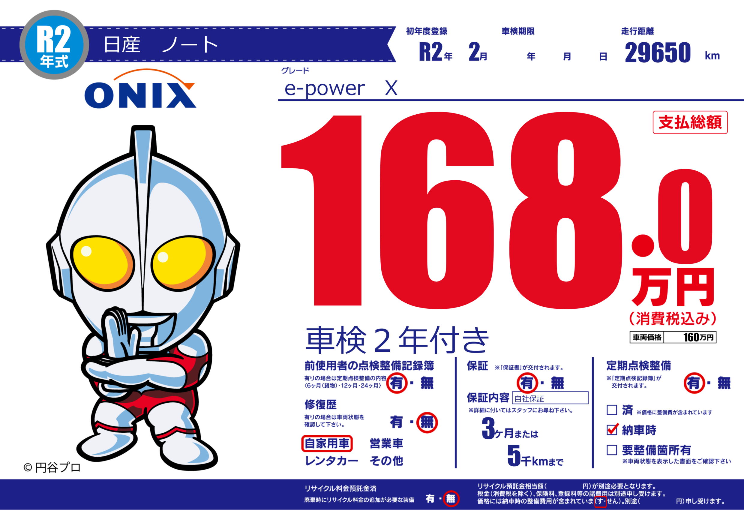 保証付き 保証内容(自社保証) 3ヶ月または(5)千kmまで |