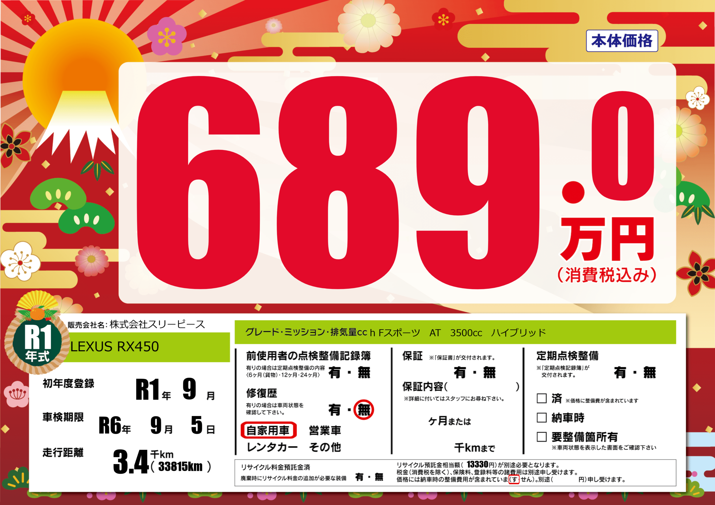 | 車名 | LEXUS RX450 | グレード ミッション 排気量 |
