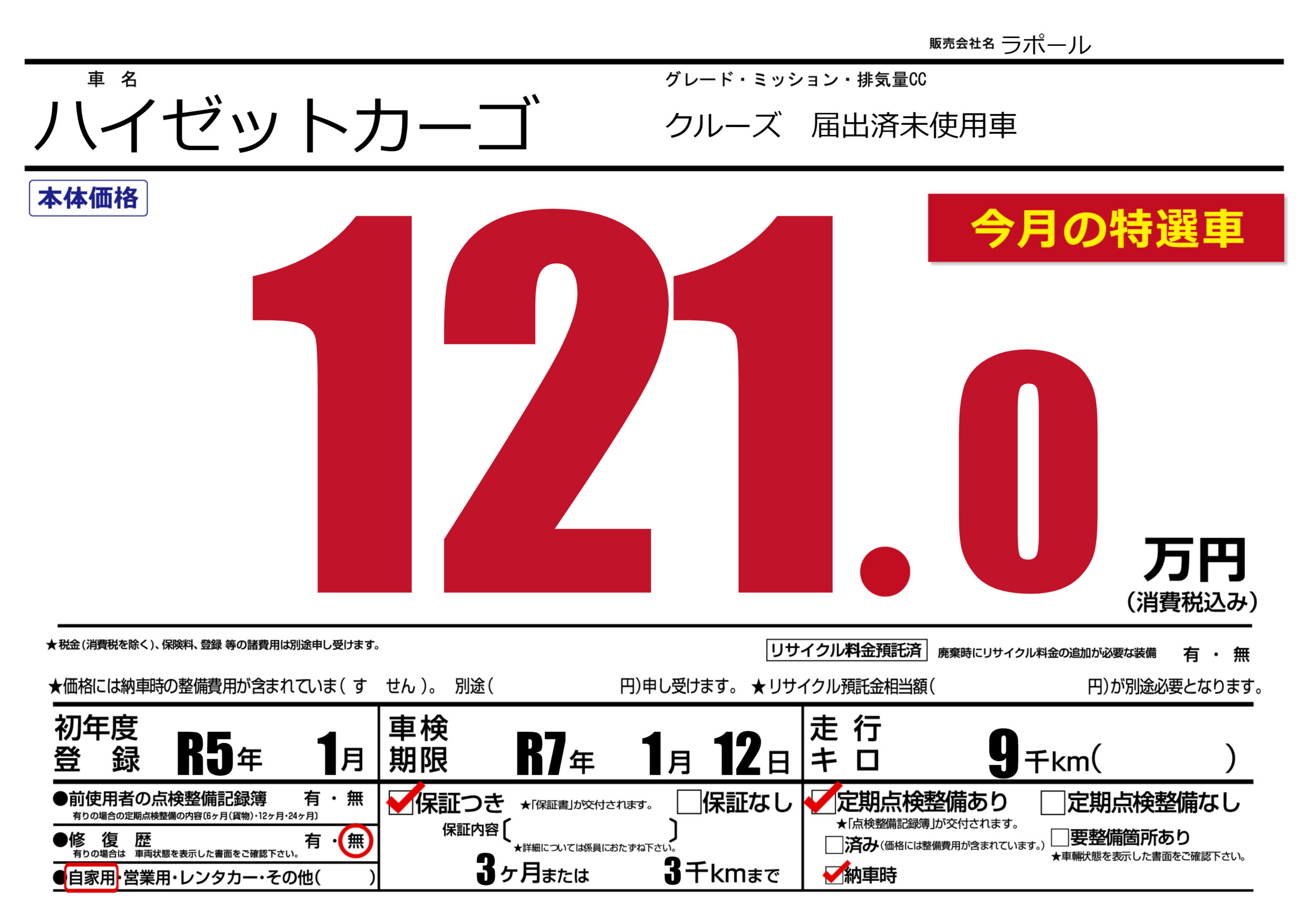 保証付き 保証内容(---) 3ヶ月または(3)千kmまで |